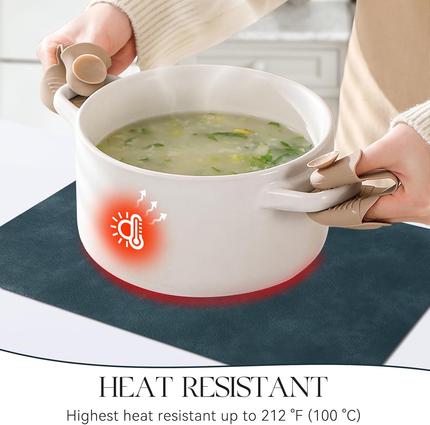 • PROTECT YOUR TABLE: Our placemats are 2mm thick and heat-resistant up to 212℉/100℃, which can protect your table from high temperatures and reduces noise from plates and flatware. It is an excellent choice to protect protect the surface of your dining table from hot dishes and liquid spills.