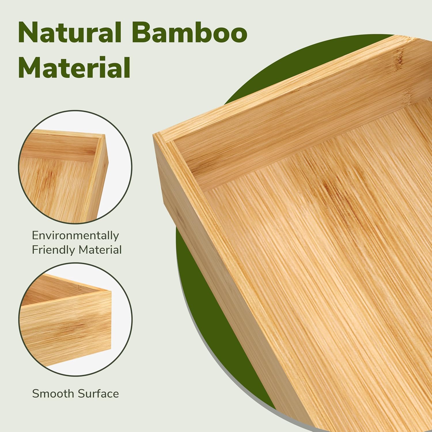 • High Quality Bamboo Material: The bamboo drawer organizer is made from high quality natural bamboo, which has a fine texture, smooth surface and warm feel; Bamboo is renewable, fast-growing, sustainable, and structurally sturdy, ensuring that the organizer will stand up to daily use and maintain its shape over time