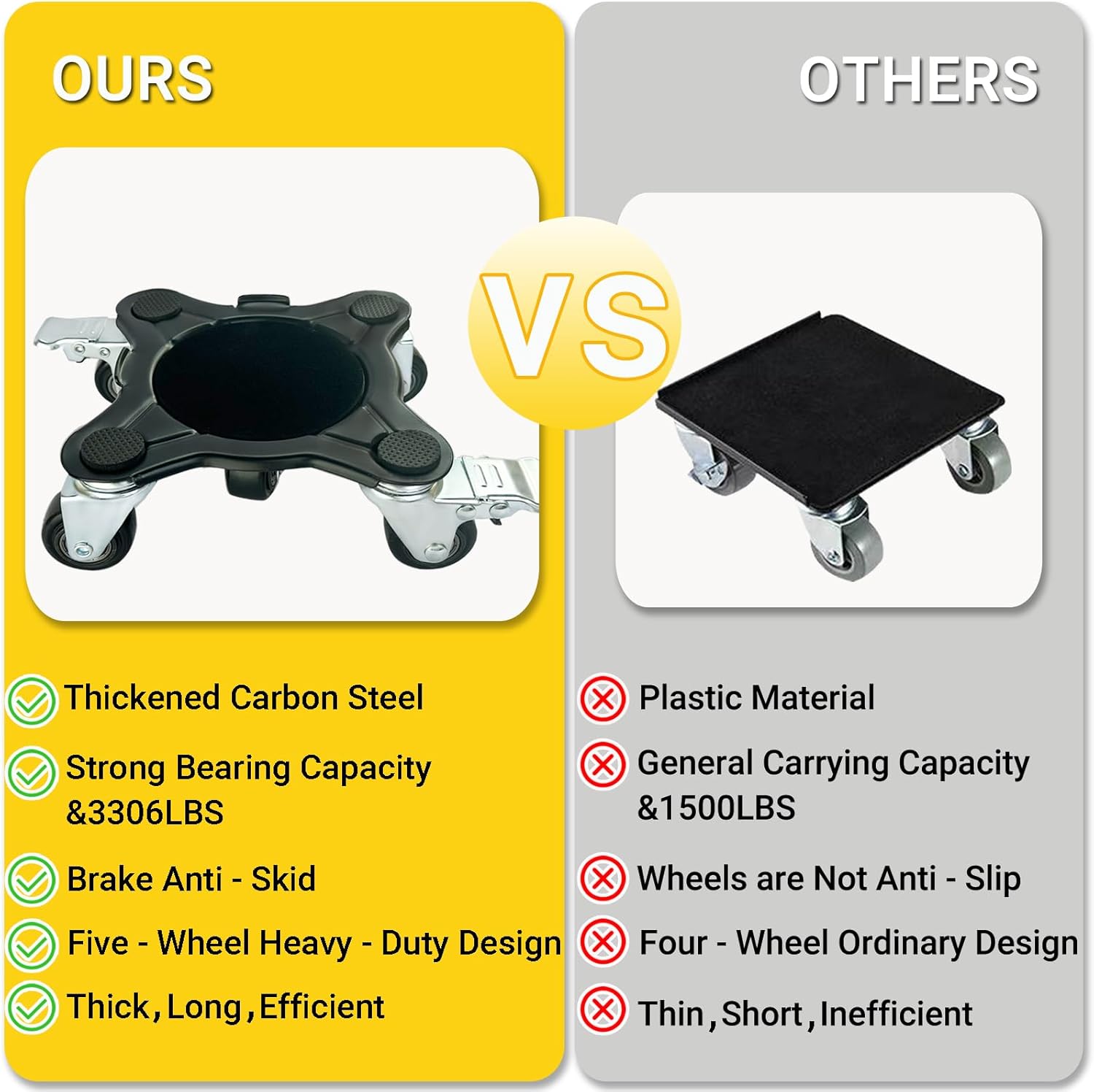 • 【5 Wheels Design & 360° Rotation with Brake】Compared to the furniture dolly with 4 wheels, the new furniture dolly has an additional middle wheel that can support heavier-duty furniture. The 360° swivel widened and thickened silent rubber wheels support easy to pull in any direction. 1.6-inch rubber wheels are resistant to wear, corrosion, have a strong load-bearing capacity, and also can absorb shock, and provide silent operation without floor scratches