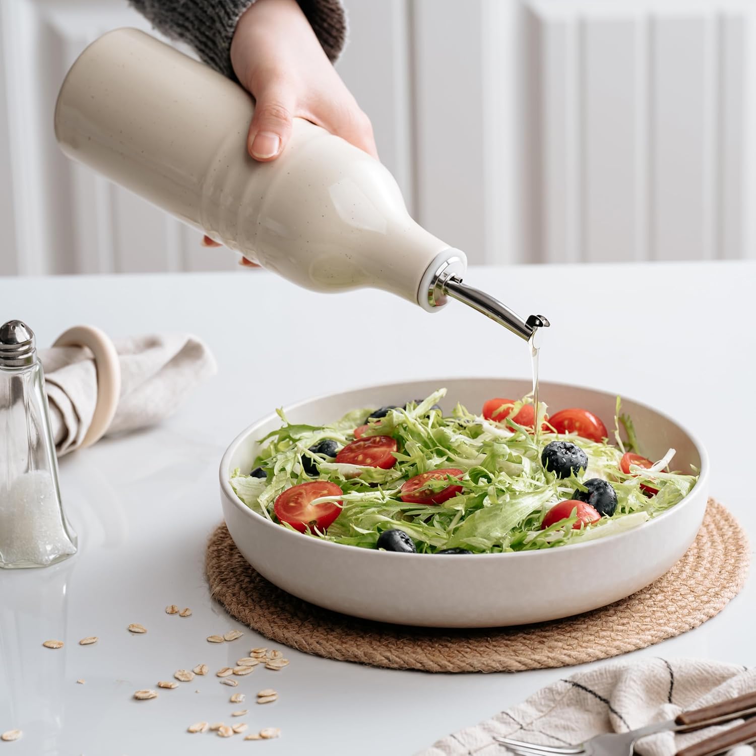 • ELEGANT OLIVE OIL DISPENSER BOTTLE - Our 16-ounce ceramic oil dispenser is handmade and batch-fired at extremely high temperatures, forming a smooth glaze and providing a resilient