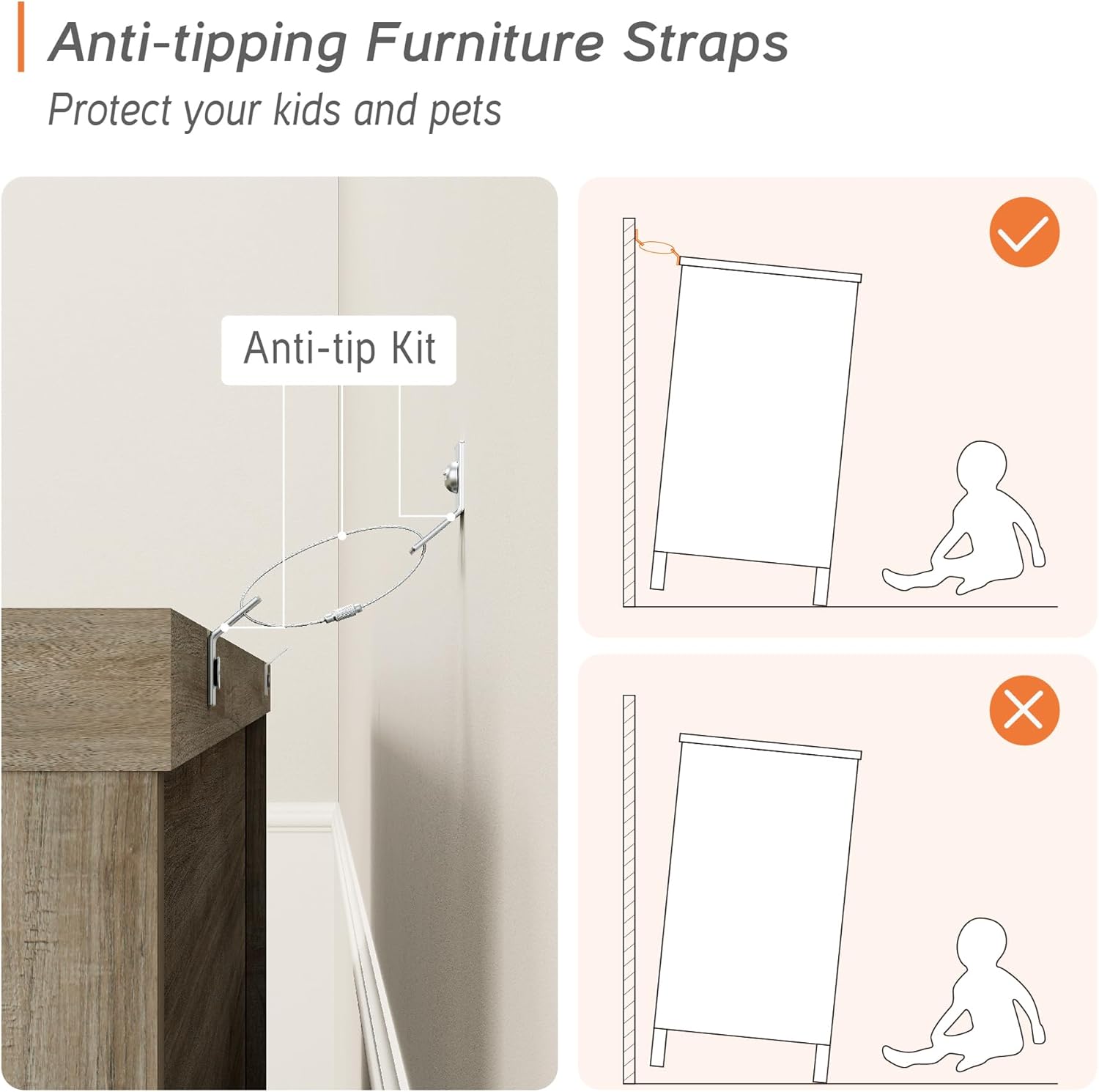 • 【Reliability&Humanized Design】The dresser for bedroom with solid wood round gourd furniture legs add beauty and ensure the stability of the storage cabinet.And an additional anti-tipping kit is also included for added safety.Total Weight Capacity: 88 lbs.The distance between the bottom plate and the floor is large enough so that the robot vacuum cleaner can pass freely.