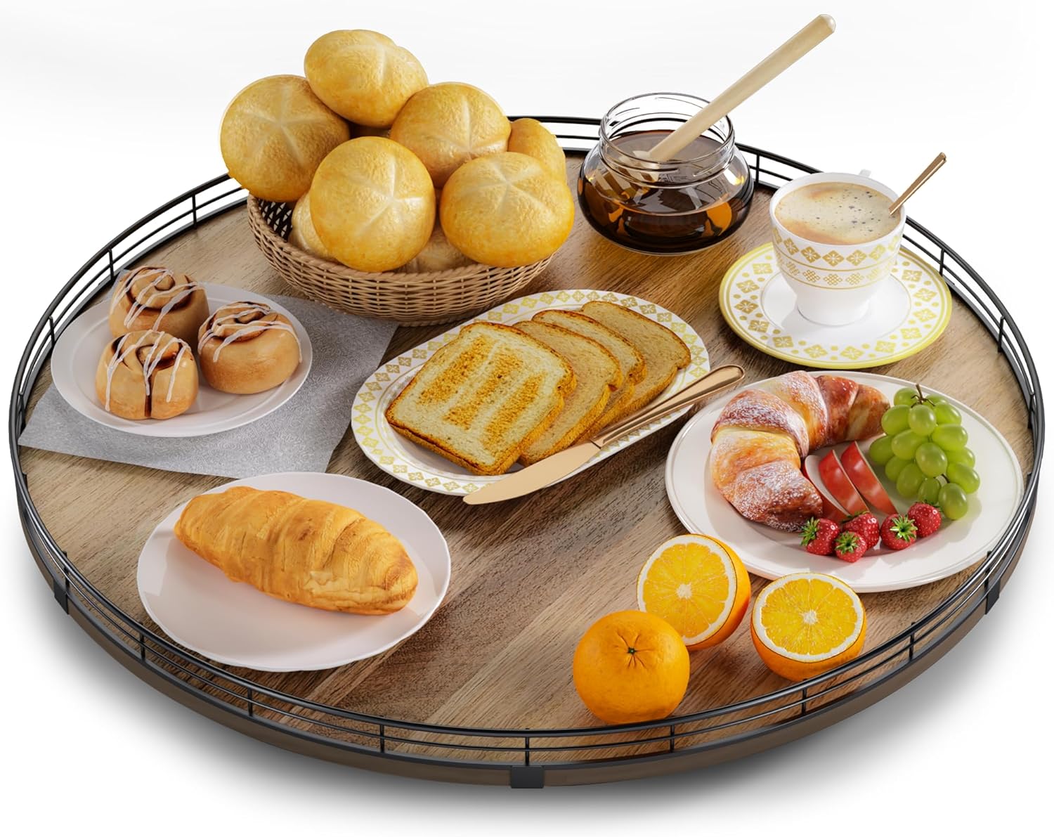 • Exquisite Texture- A turntable to meet your many home needs. Place it in your cabinet to easily store and access food, condiments, cans, medicines and more. As a coffee table tray, perfect for displaying napkin holders, vases, candles. Use it as a bathroom vanity tray to store lotions, perfumes, cosmetics, keep your life organized!