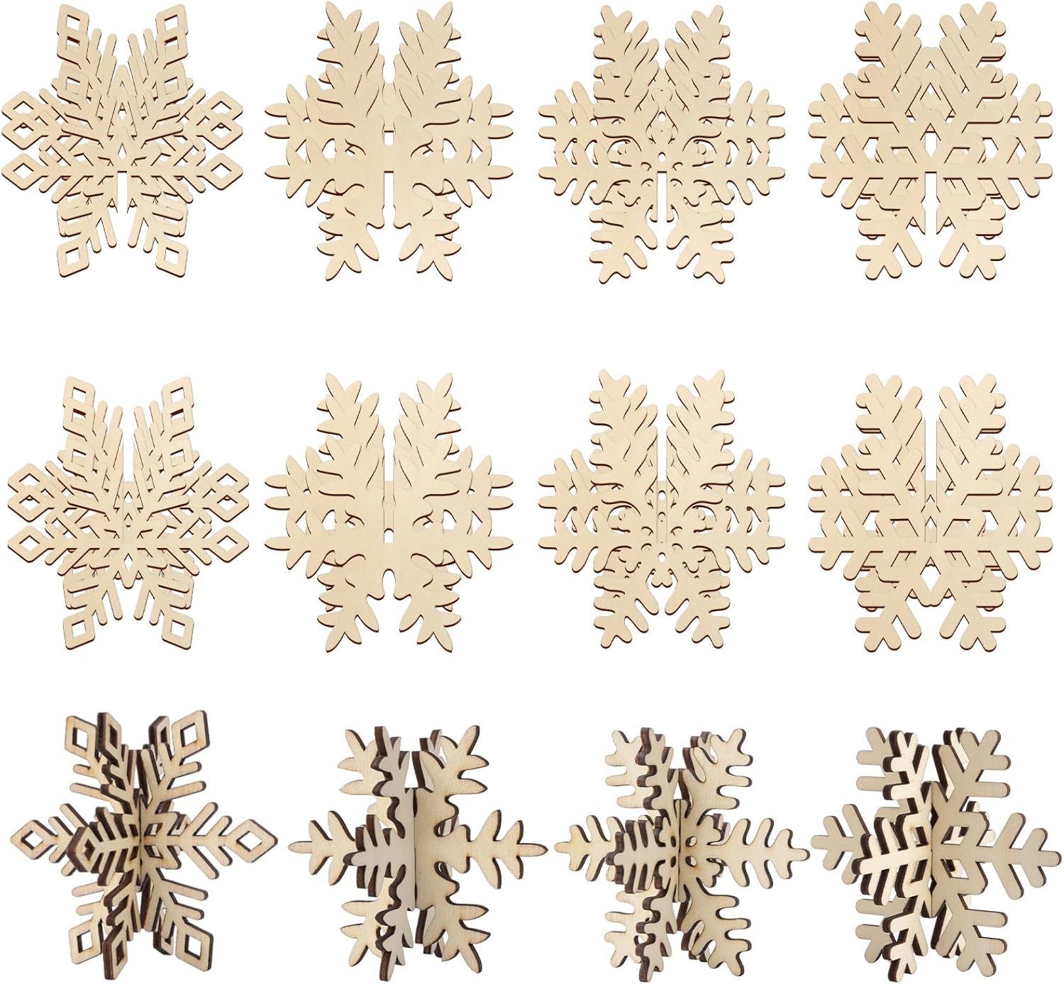 • Unique 3D Snowflake Shape Wood Crafts To Paint - These unfinished wood sheets are cut out to cute snowflakes patterns, in sufficient quantity, and suitable size for you to use on DIY craft projects, you can also share them with your kids and friends.