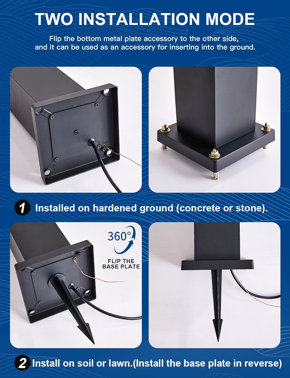 • 🔩【2 INSTALLATION OPTIONS & EASY TO INSTALL】:The path light provides two installation methods, which can be applied to most scenes. It can be fixed with bolts on hardened ground and spikes on soil or lawn. Both accessories are included in the package.