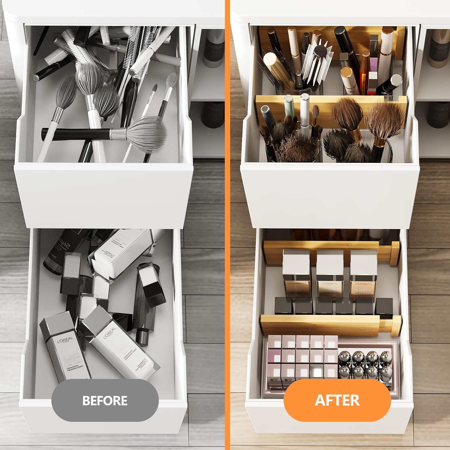 • Premium Bamboo Material: These bamboo drawer dividers are made of high quality bamboo material, natural color, tough texture, smooth surface, well made and long-lasting; Simply wipe it with a damp cloth
