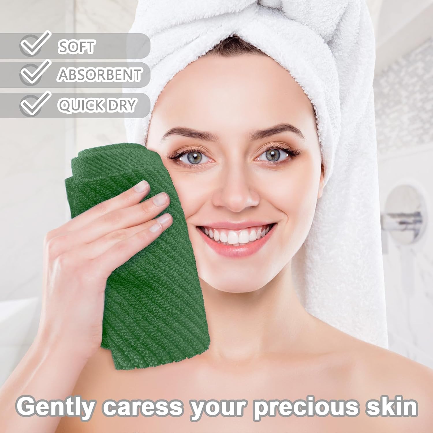 VOOVA & MOVAS Green Washcloths, 6PC Hand Towels 13" x13" - 100% Cotton | Thick | Quick Dry | Lightweight, Wash Cloths for Your Face, Bathroom Essentials, Hunter Green