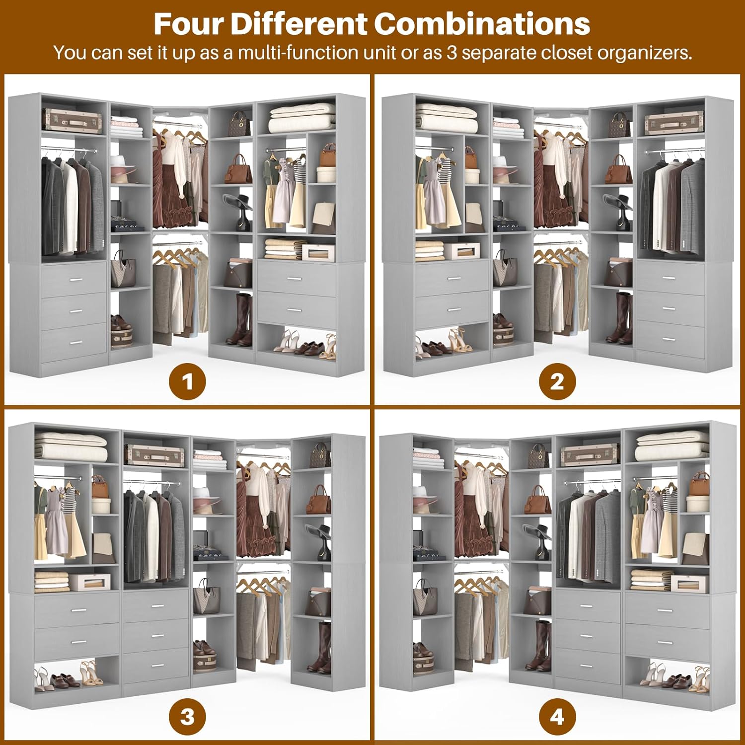 • DIY Customize Your Dream Walk-in Closet: Our closet systems put the design in your hands, allowing you to DIY to your liking. You have the flexibility to mix and match different modules based on room size, personal style and storage requirements to create an dreamful L- or U-shaped walk-in closet.