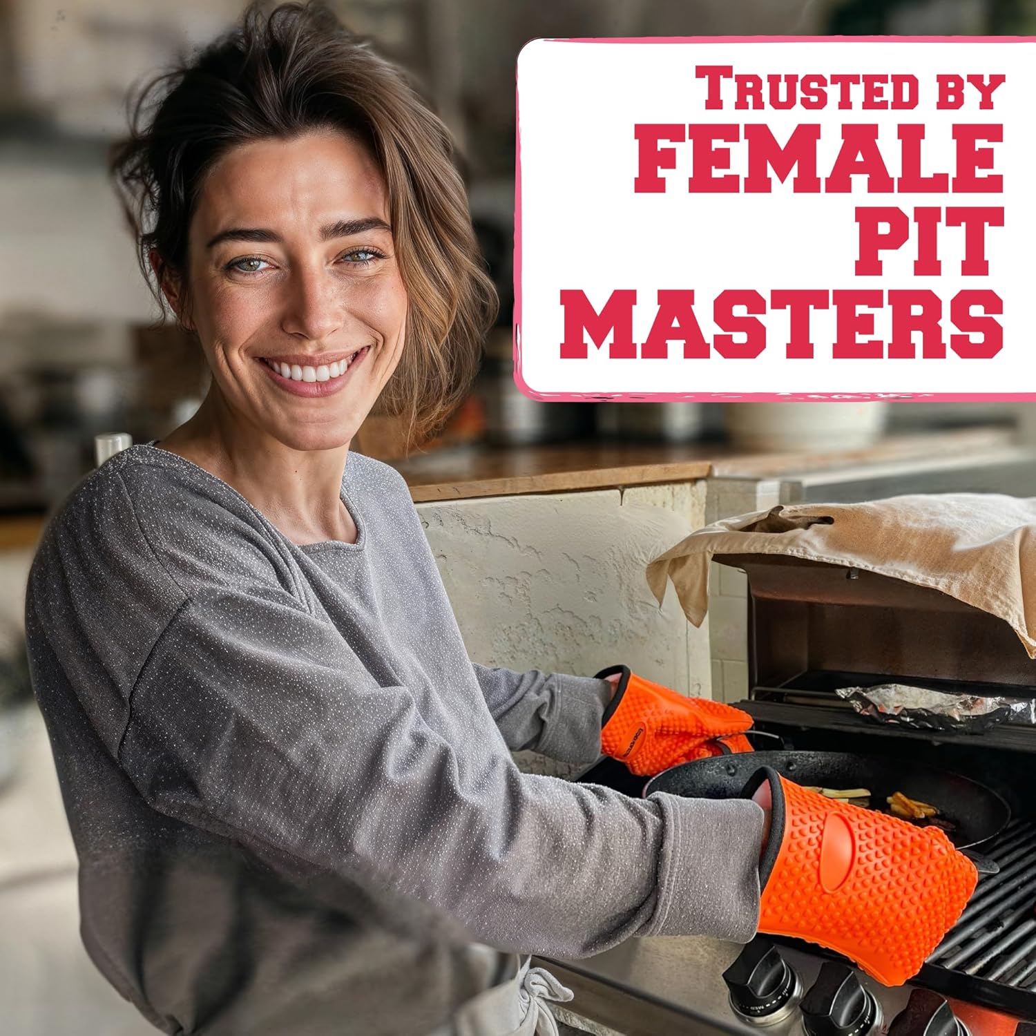 KITCHEN PERFECTION Silicone Smoker Oven Gloves For Women -Extreme Heat Resistant BBQ Gloves -Handle Hot Food Right on Your Smoker Grill Fryer|Waterproof Oven Mitts Grill Gloves |Superior Set+3 Bonuses