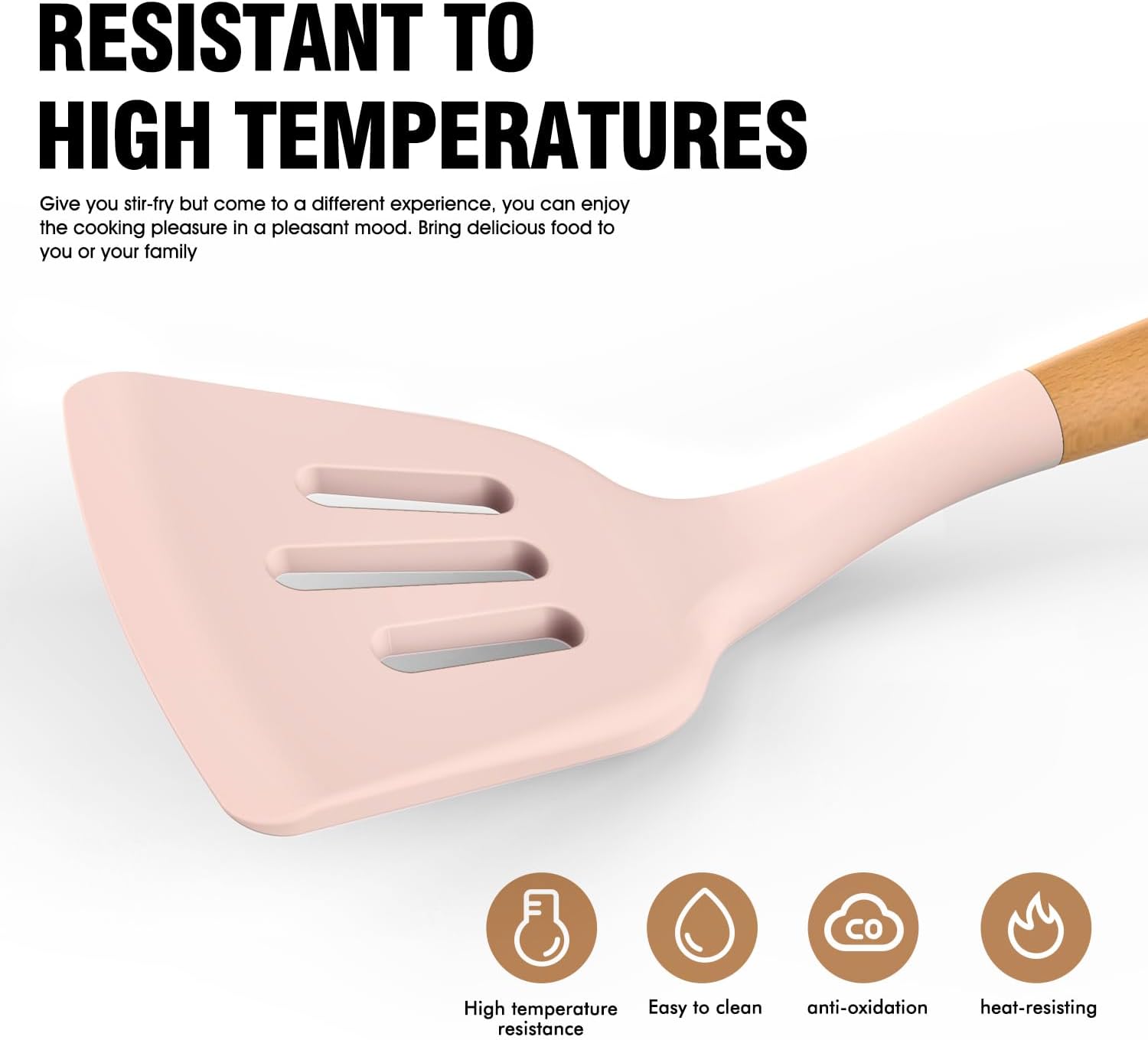 • NON-DEFORMABLE, EASY TO CLEAN: We've designed these silicone kitchen utensils sets with stainless steel cores wrapped in silicone for shape retention and flexibility. No warping or cracking, no hassle. The silicone utensils for coking one- piece construction ensures no pesky gaps where food can hide, making cleaning a breeze. Due to the unique nature of wooden handles, we recommend handwashing