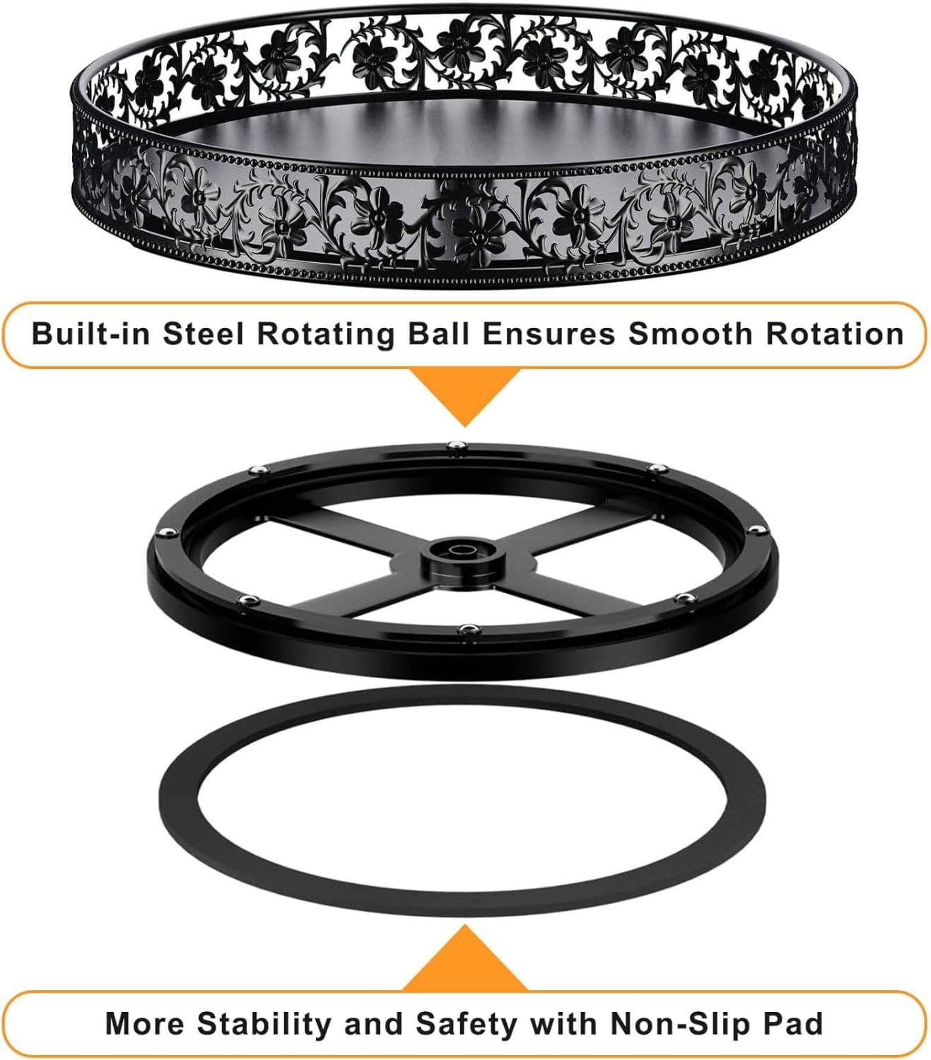 • Floral Raised Edges Design: The raised edge lazy susan features a beautiful classic floral design, provides superior decorative vision, and prevents items from falling while spinning, making it safer to move the lazy susan organizer from one place to another. The open design keeps items visible and easily accessible.