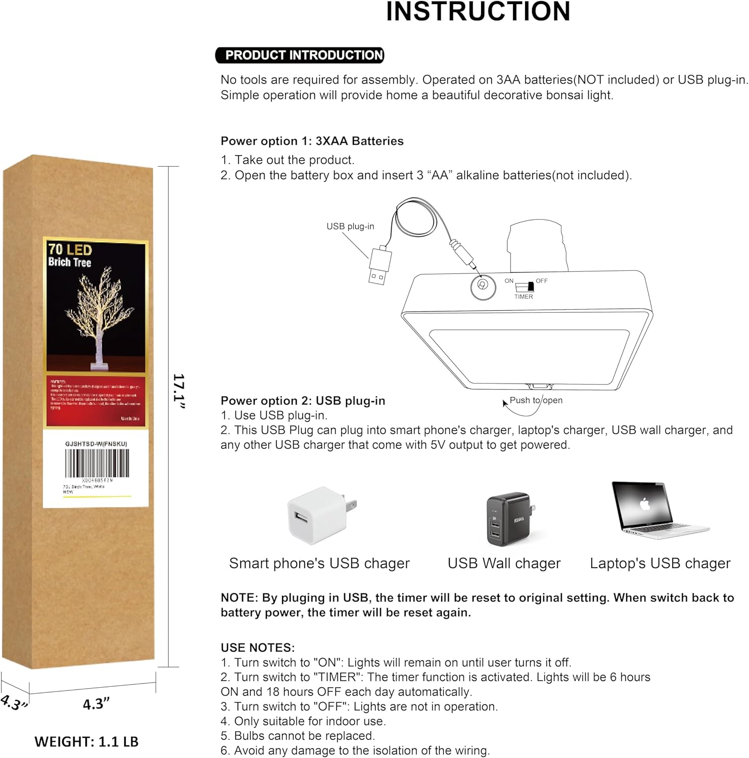 • Unique Design: 70LED Lighted Birch tree with warm white light, white trunk with perfect curve, coral-shaped branches add a mesmerizing atmosphere.