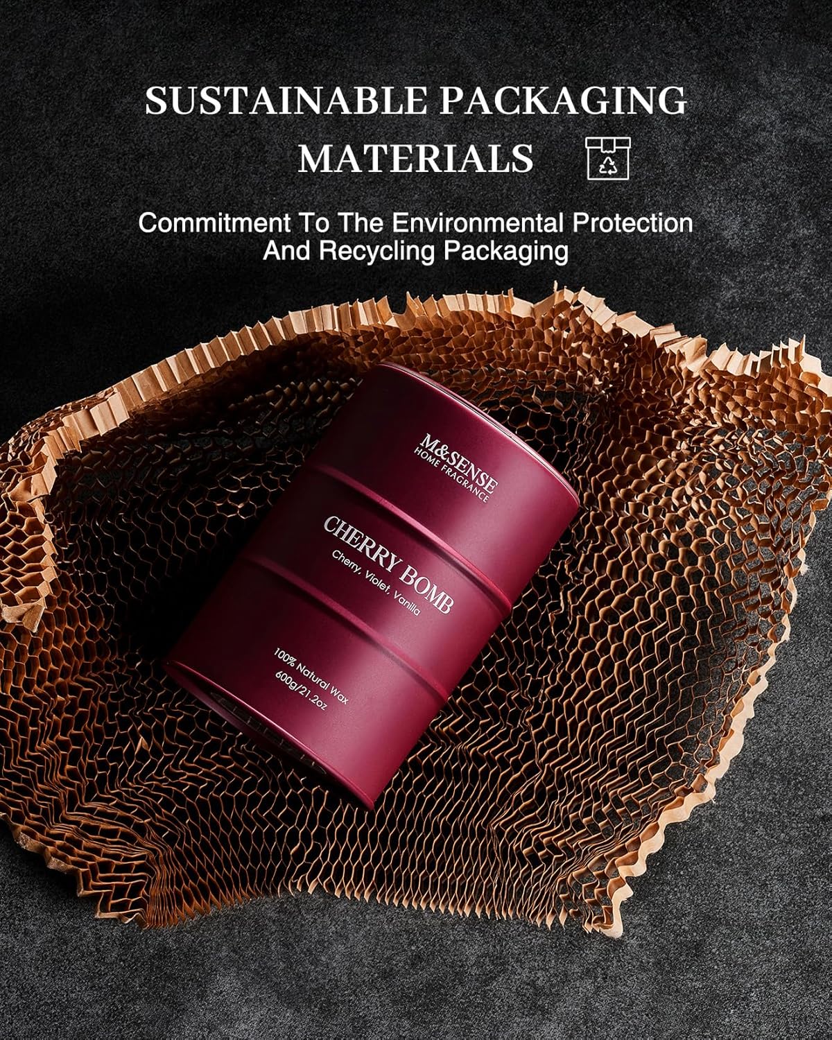 • 💚 Sustainable Material - M&SENSE candles are all crafted with the finest and most natural ingredients. Using high-end vegetable wax and unbleached cotton wicks in a reusable and recyclable tin. Packaged in recycled honeycomb paper and cardboard box for a more sustainable future.