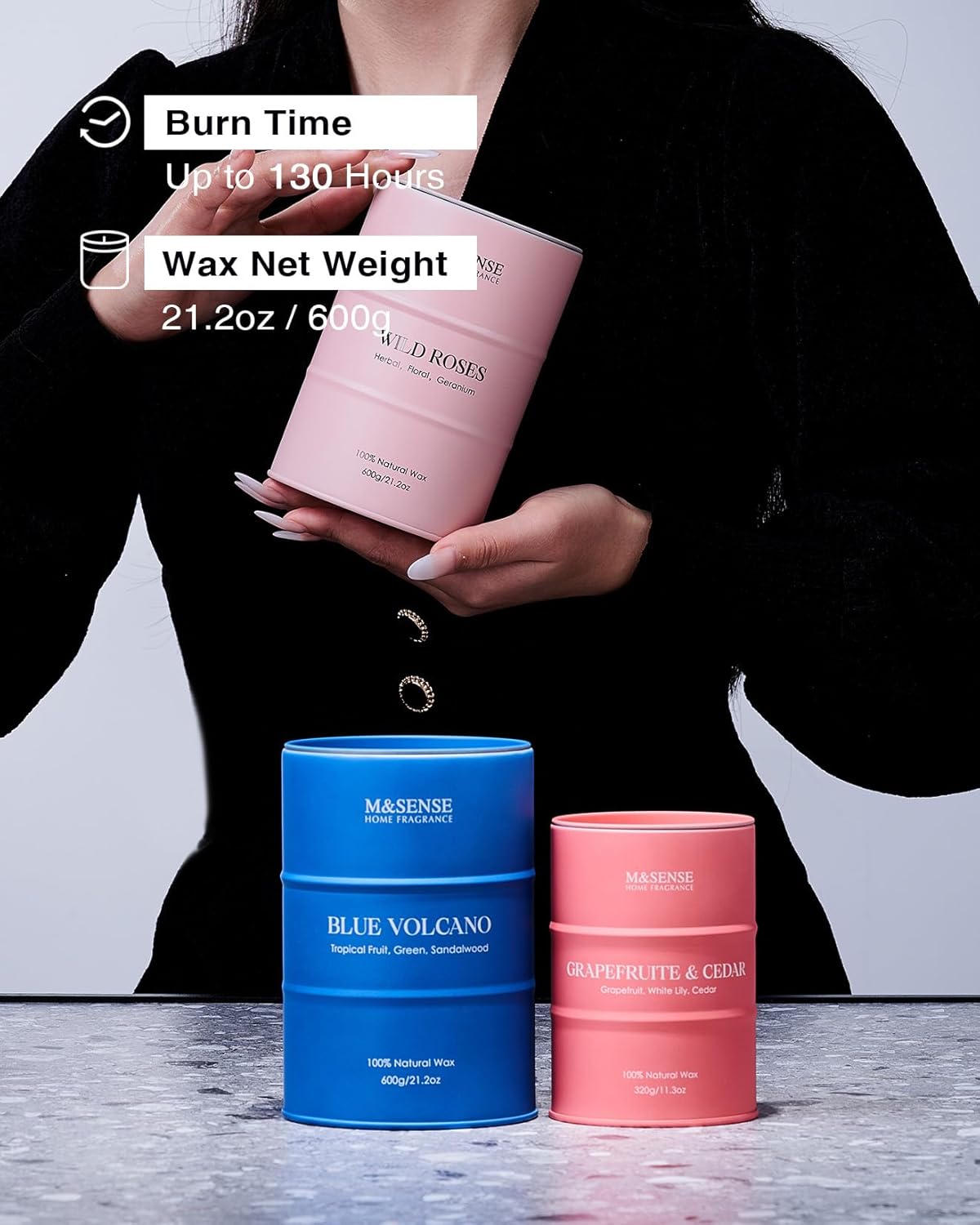 • 💚 Sustainable Material - M&SENSE candles are all crafted with the finest and most natural ingredients. Using high-end vegetable wax and unbleached cotton wicks in a reusable and recyclable tin. Packaged in recycled honeycomb paper and cardboard box for a more sustainable future.