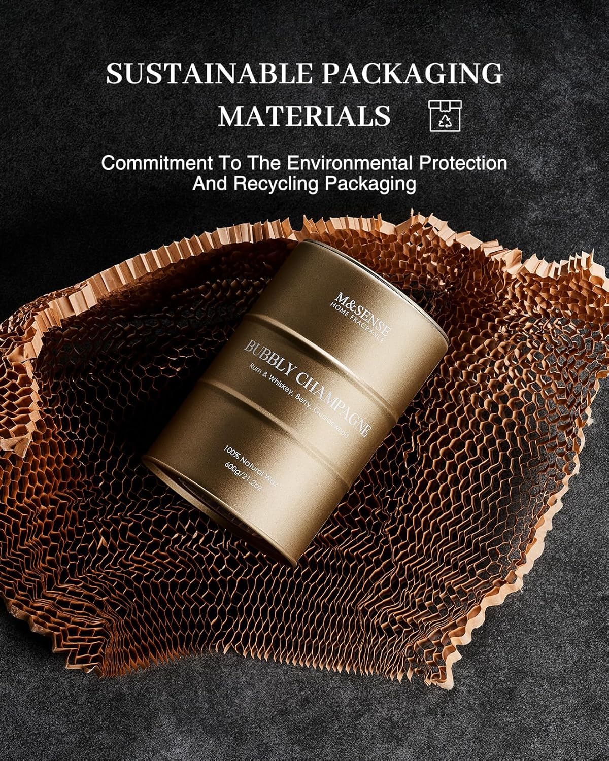 • 💚 Sustainable Material - M&SENSE candles are all crafted with the finest and most natural ingredients. Using high-end vegetable wax and unbleached cotton wicks in a reusable and recyclable tin. Packaged in recycled honeycomb paper and cardboard box for a more sustainable future.