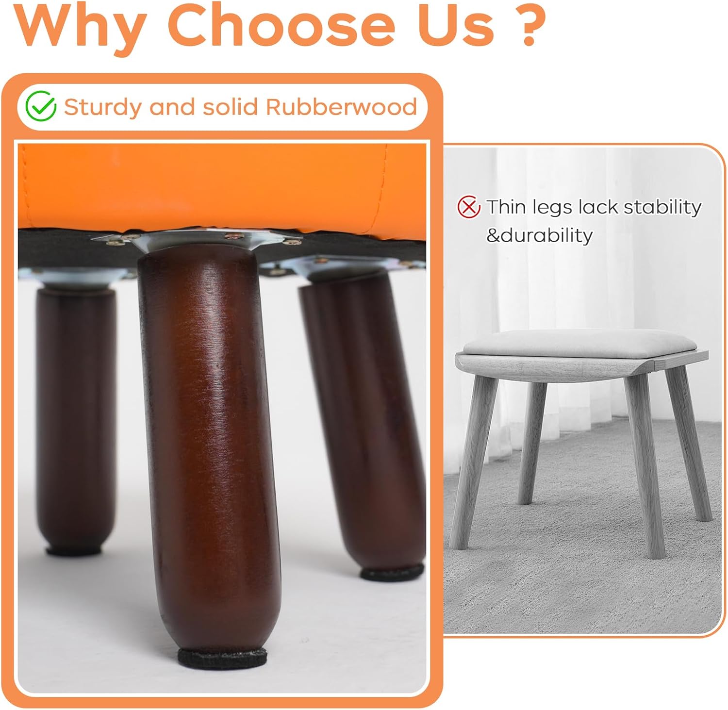 • 【Anti-Slip Design】- These leather foot stools small ottoman rubber legs come with dedicated felt pads to prevent scratches on floor and keep it from sliding.Wood leg with non-slip felt pad is quiet when moving, and can avoid leaving scratches on floor.The small footstool is perfect for small spaces and is compact enough not to get in anyone's way.
