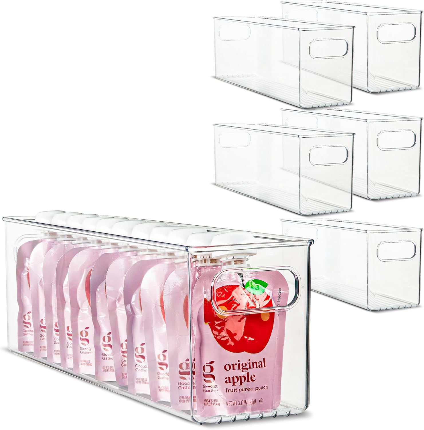 • Perfect for organizing: These bins are perfect for creating calm, clean and organized spaces. Great for upper cabinets & pantry shelves, for organizing fridge/freezer, pantry, cabinet storage, medicine cabinet or anywhere in your home. Ideal to use for yogurts, baby food, pouches, cans, dry goods, fresh fruits and vegetables, potatoes, apples, boxed foods, juices, drink boxes. Also good for snacks.