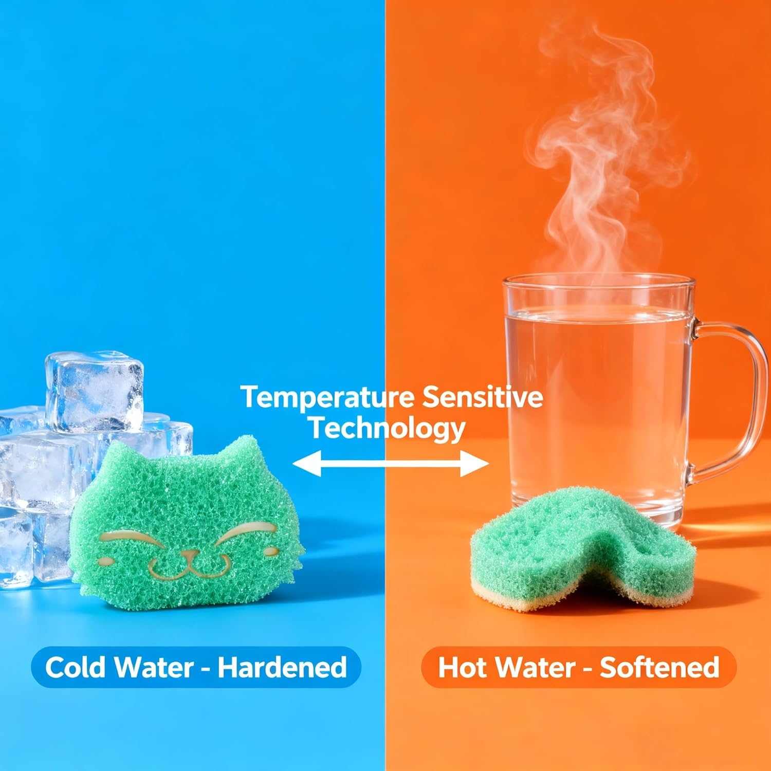 • Smart Temperature Response: Material adapts to water temperature - stays firm in cold water for tough grease removal, softens in warm water for delicate surfaces. Perfect for stainless steel, non-stick pans, and glassware.
