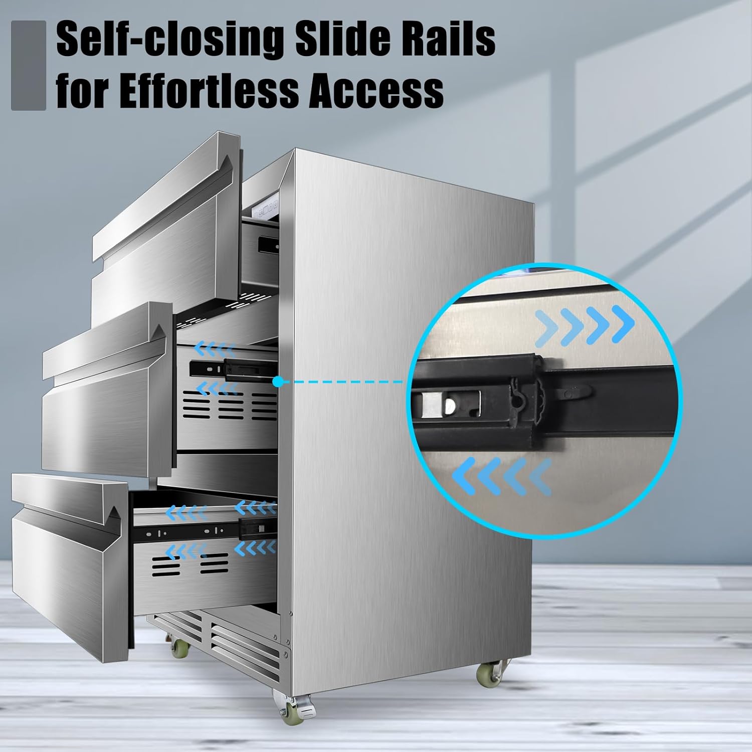 24 Inch Upgraded Three-Drawer Beverage Fridge, Weather Proof Outdoor Stainless Steel Beverage Refrigerator, Under Counter Built-in Beverage Cooler for Home & Commercial Use