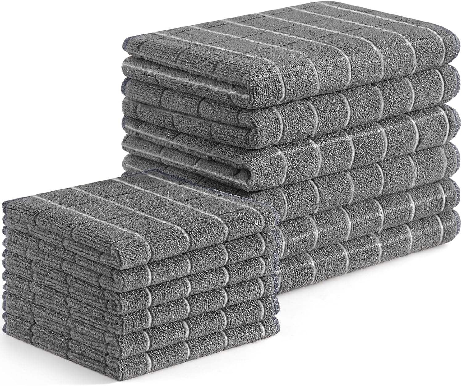 Homaxy Microfiber Kitchen Towels and Dishcloths Set, 12 Pack Soft and Absorbent Dish Hand Towels Bulk, 28 x 16 Inch & 12 x 12 Inch Quick Drying Rags for Washing Dishes, Grey
