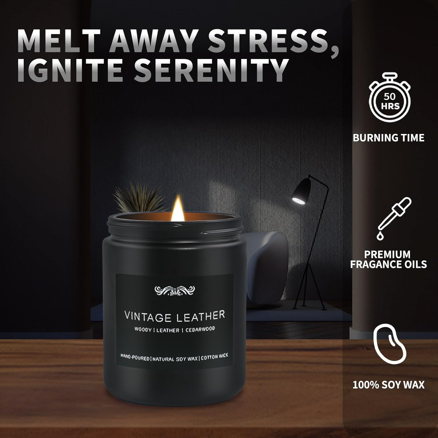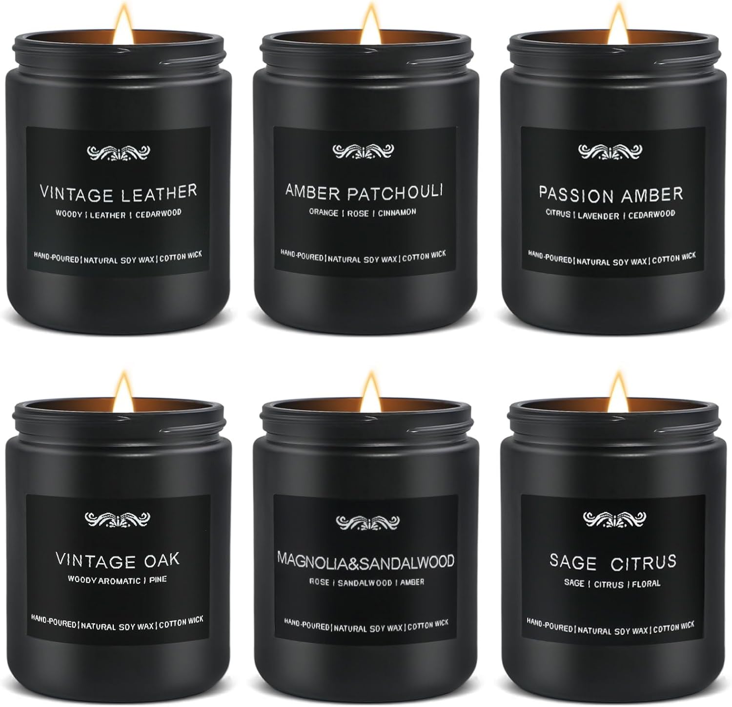• Men Candles Set: We have carefully blended 6 different fragrance types, Vintage Oak, Vintage Leather, Patchouli Amber, Magnolia & Sandalwood, Sage & Citrus, Passion Amber.Each scent is carefully blended by professional perfumers, with rich layers and long-lasting charm, which can bring you a unique olfactory experience.