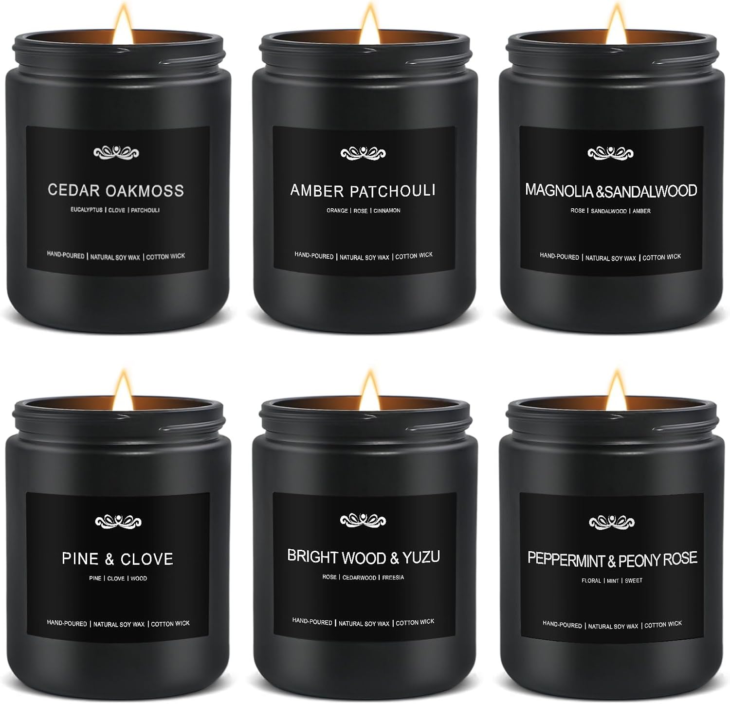 JXDLSQ 6 Pack Candles for Home Scented Aromatherapy Candles Gifts Set for Men, Men Candle Set, 42 oz 300 Hour Long Lasting Candles, Gifts for Mens, Birthday, Anniversary Present