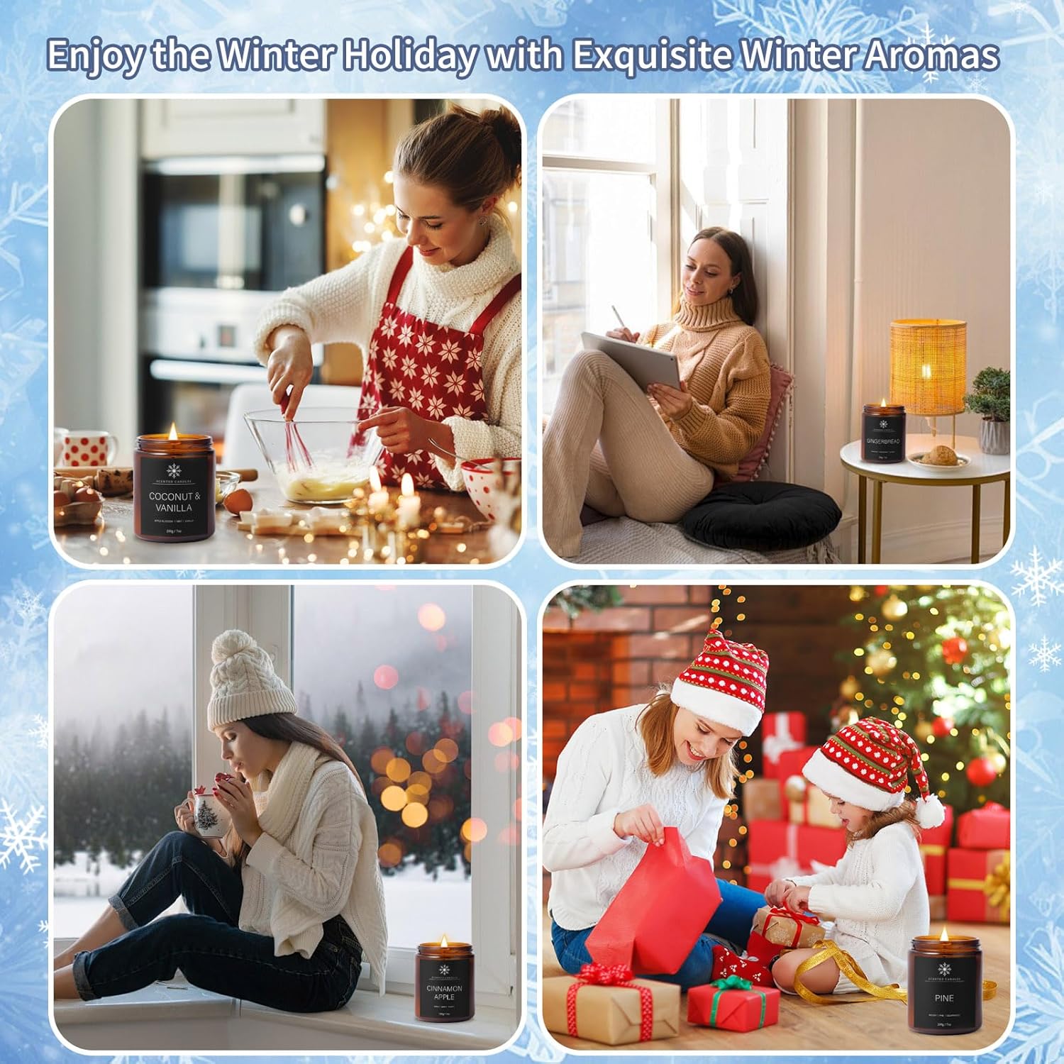 • Christmas Gifts Set: Whether for personal use or as a gift for family and friends, or just to show someone you care, this collection of winter scents will delight your heart with beautifully packaged, festive candles. More than just a gift, this is an invitation to stress relief and enjoy the simple pleasures of winter.