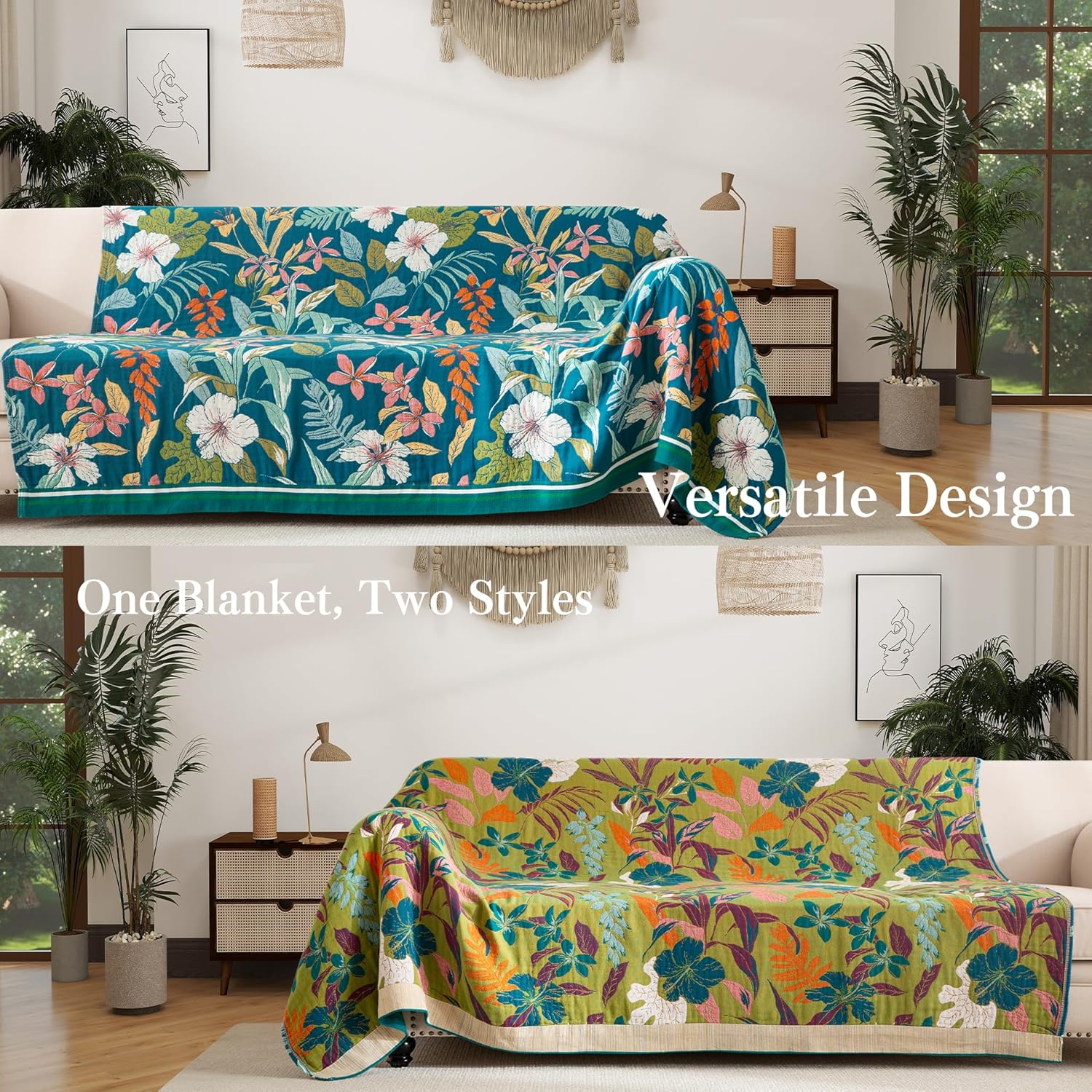 • Easy Care: Designed for your busy lifestyle, this blanket is incredibly easy to care for. The thoughtful label-free design provides a clean, seamless look, while the reversible sides give you the flexibility to refresh your space with minimal effort. Simply toss it in the washing machine, and it will stay soft, vibrant, and ready to use — no hassle, just comfort. Perfect for everyday living, this blanket makes maintaining your home both effortless and stylish.