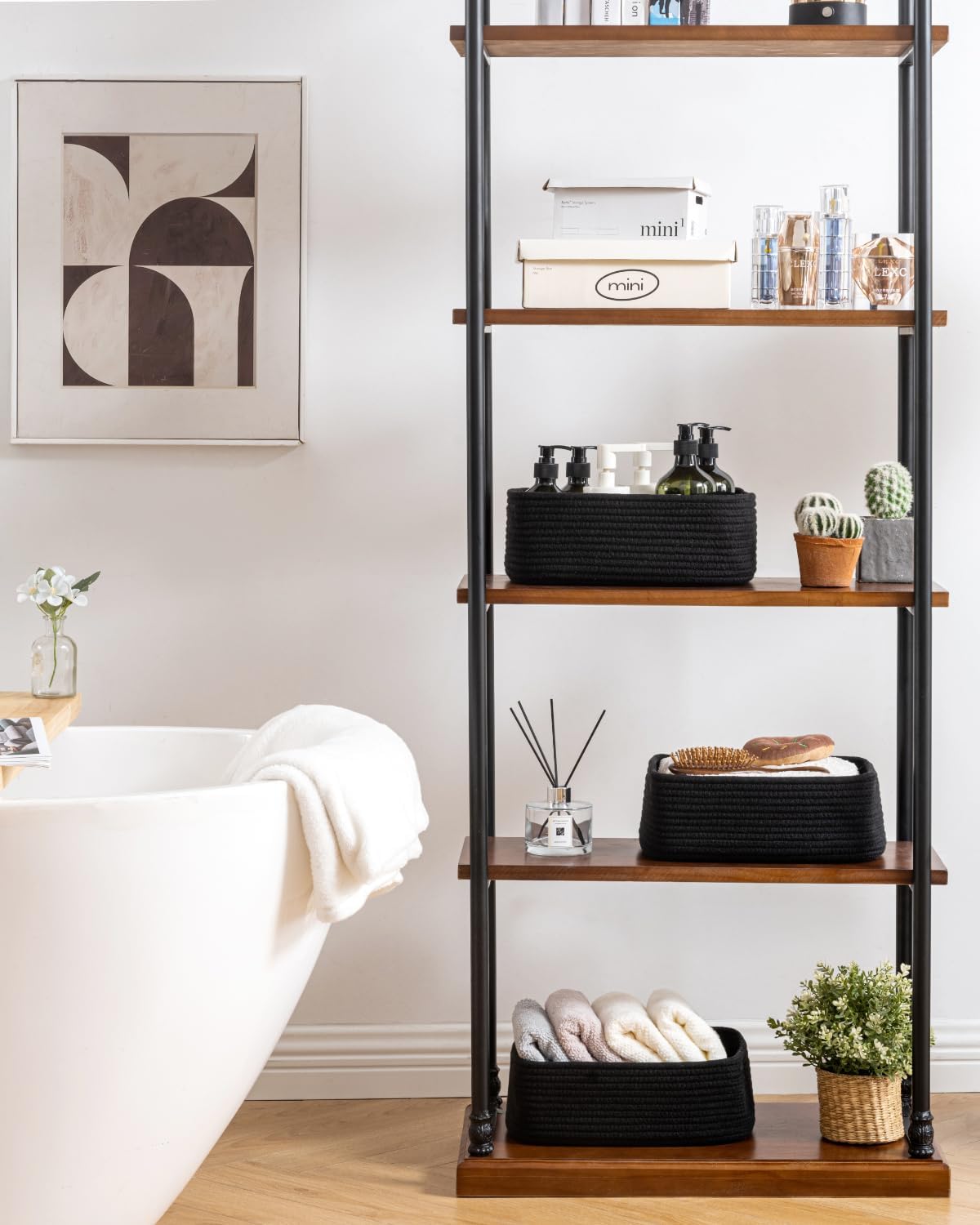 • [ Elegantly Designed to Match Any Décor ] Our small rope basket creates a minimalist appearance, and it adds a touch of warmth and texture to any room. The classic solid color design ensures seamless integration with your existing aesthetics, complementing any decoration. Perfect as decorative storage baskets for shelves, cabinets, and any open display space, making them a stylish and practical addition to any decor, enhancing the overall aesthetics of your room