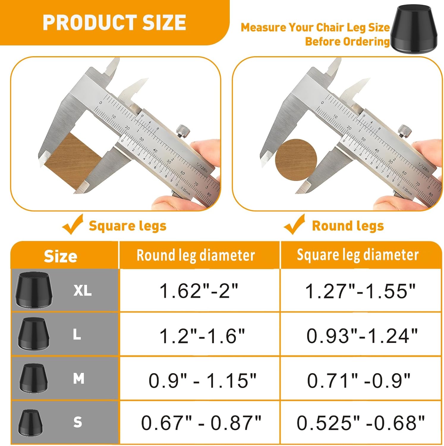 • 【UNIVERSAL SHAPE AND SIZE】:Furniture Sliders has High elasticity, free to pull.No deformation and no discolorratio.Chair Leg Sliders are good for round furniture legs 1.62- 2"(41-50mm) and square legs 1.27-1.55"(32.19-39.25mm).with perimeter of 5.07-6.18" (128.74- 157mm).