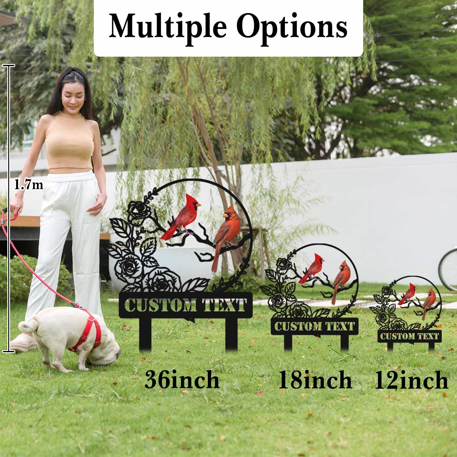 • Personalized Stake: Customize with a name or other wording to give to your family, friends or use to decorate your own yard. Cardinal stake look great outside, in the garden, on the patio, adding color to your outdoor space.