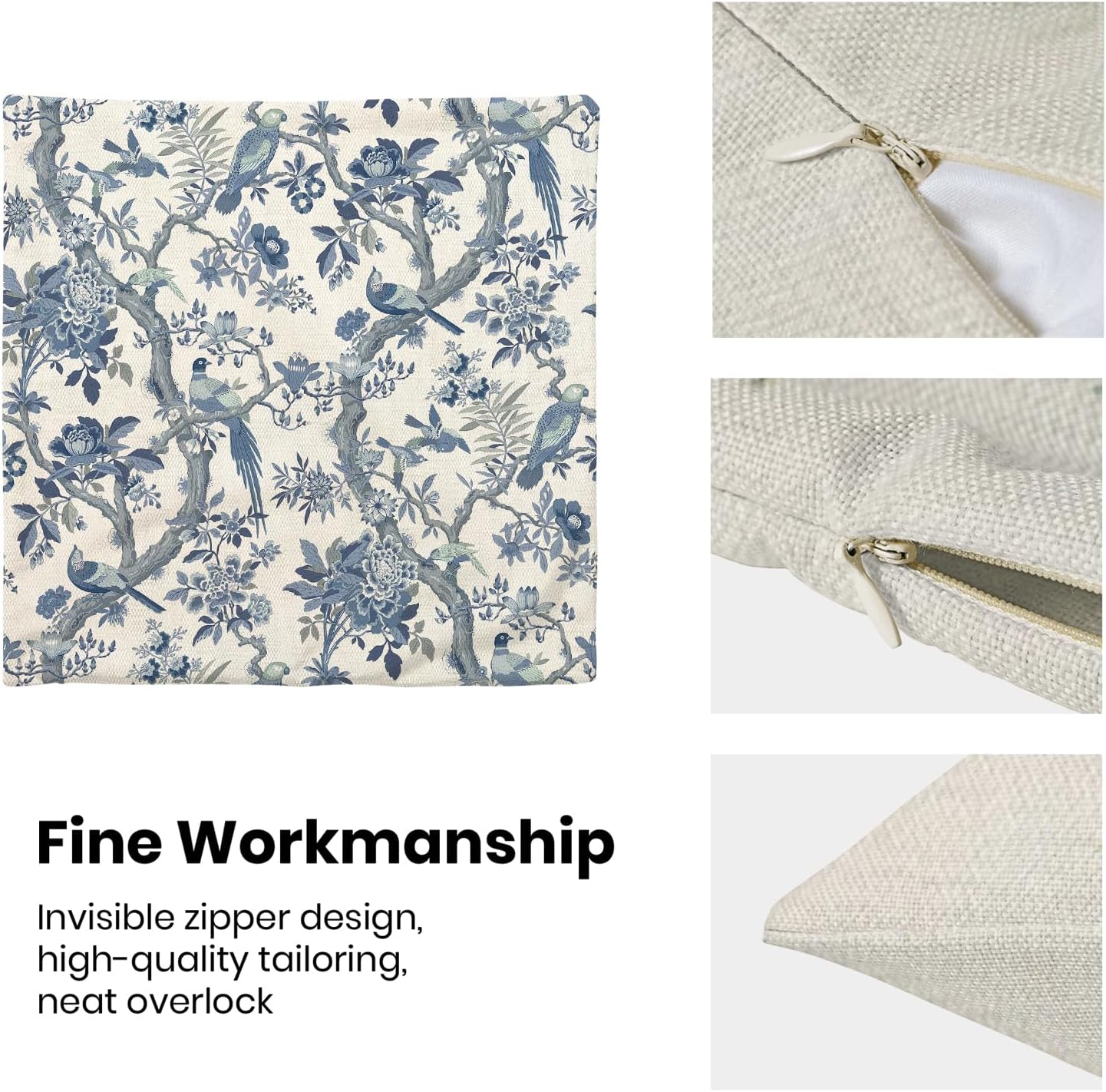 • 【Spring Pillow Covers】 Our Chinoiserie floral throw pillow covers 18x18 inch are made of excellent breathable polyester cotton fabric. The navy blue decorative pillow covers is sturdy, soft and skin-friendly. The outdoor pillow covers adopt exquisite edging technology and four sides of our floral pillow covers are sewn firmly, which is not easy to open the line.