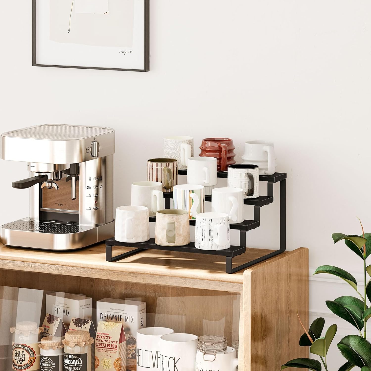 • Versatile Storage Options: Use this display stand rack to ondiments, coffee syrup bottles, spices, cans and kitchen supplies in the kitchen ; It can be used for books and decorations in the study; It can be used to store bath towels, lotions, cosmetics, moisturizers, nail polish, soap and shampoo in the bathroom. No exaggeration, it can be applied to any corner of the house