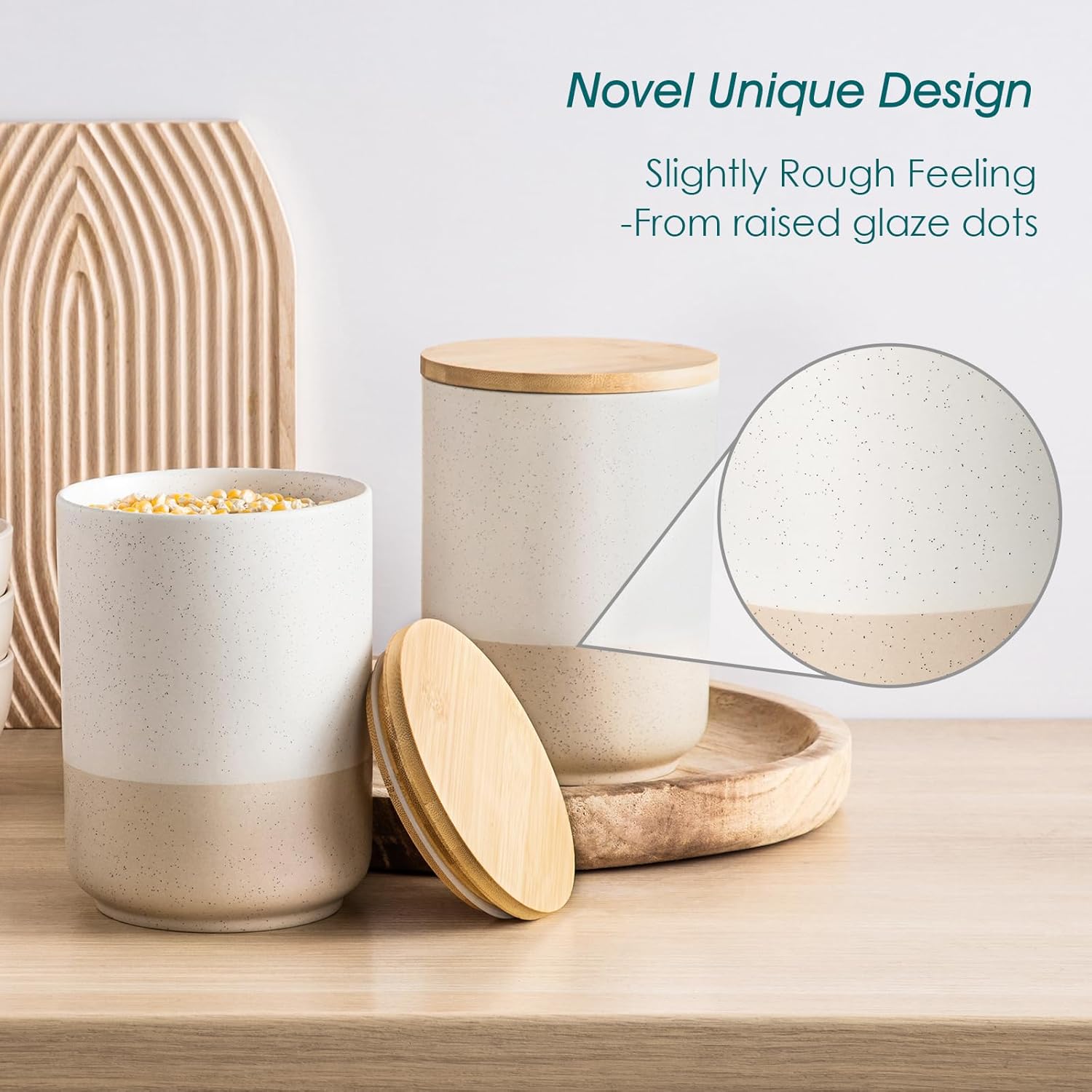 • 【Beautiful Decoration】The clean look of these jars adds a modern touch to your space, practical and beautiful. The speckles on the jars are a unique vancasso design.
