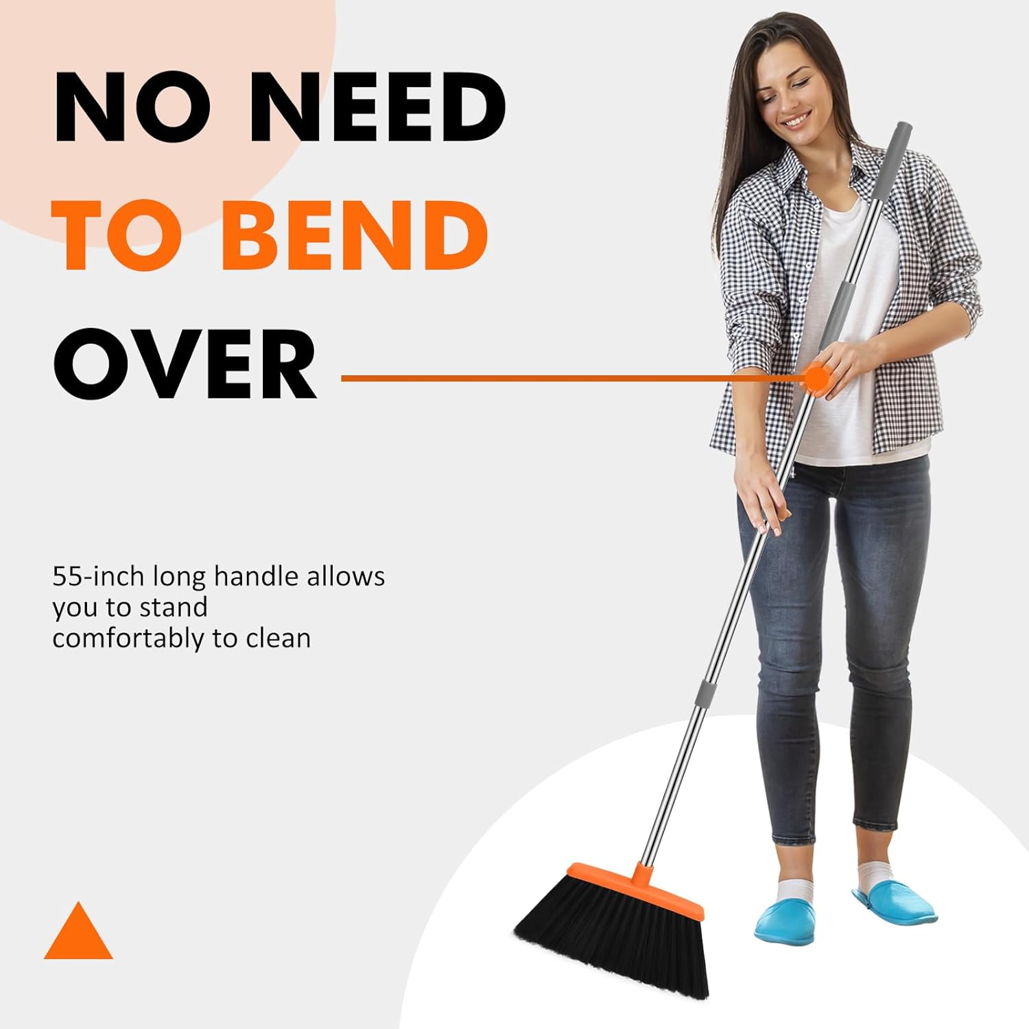 • ENHANCED LARGE BROOM:The broom with 56 inch long adjustable handle so you don't have to bend over and the height can be adjusted to suit your needs. 13.7-inch broom head reaches wider areas of the floor and cleans more efficiently.