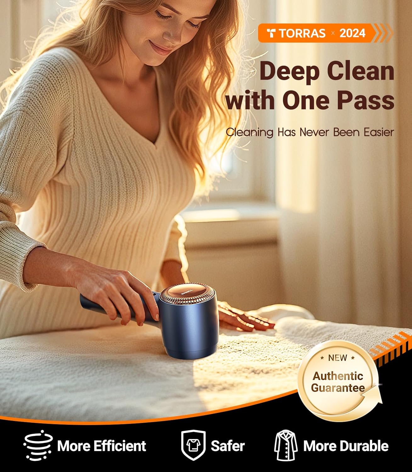 • [12 Times Removal Efficiency] Cleaning A sweater only takes ONE minute with TORRAS rechargeable fabric shaver. The turbine design increases the suction power of lint by 2 times. Six 45° blades increase the cutting efficiency by 3 times. The 11000 RPM motor doubled the cleaning speed. Each electric lint remover rechargeable contains numerous exquisite designs.