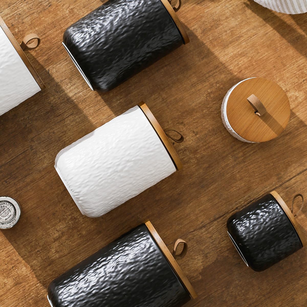 Black White Ceramic Coffee Canister Tea Canister with Seal Wood Lid, Airtight Coffee Storage Container for Coffee Bean, Ground Coffee, Sugar, Cookie Candy jar (White, 800ml)