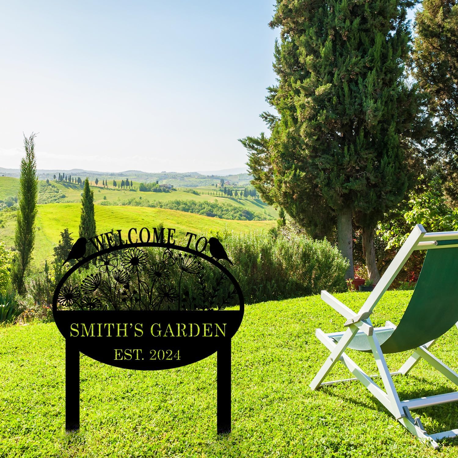 Custom Metal Flower Sign with Stakes - Personalized Garden Decor, Housewarming Gift - Large Yard Sign Plaque