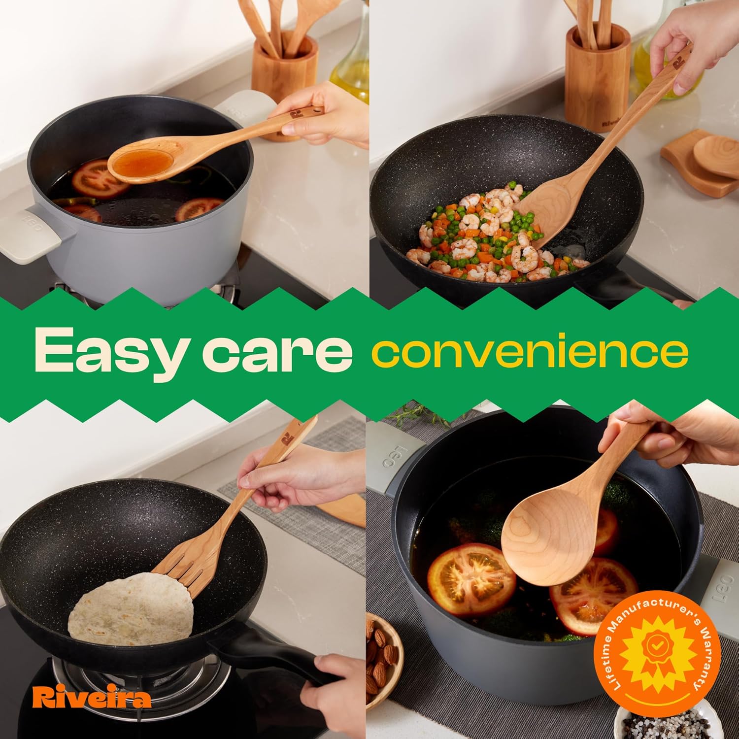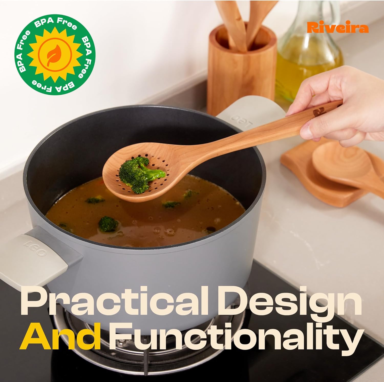 • Versatile and Eco-Friendly Cherry Utensils – Our kitchen utensil and wood spoons are made from environmentally friendly cherry, which is long-lasting and sustainable. The wood cooking utensils set is designed for all cooking styles, offering tools for stirring, serving, and flipping. These wooden utensils for cooking are perfect for non-stick cookware, providing a scratch-free experience. These wood cooking utensils make a great addition to your kitchen.