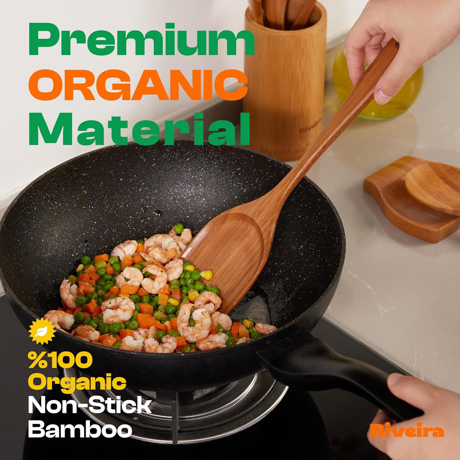 • Versatile and Eco-Friendly Brown Bamboo Utensils – Our kitchen utensil and wood spoons are made from environmentally friendly brown bamboo, which is long-lasting and sustainable. The wood cooking utensils set is designed for all cooking styles, offering tools for stirring, serving, and flipping. These wooden utensils for cooking are perfect for non-stick cookware, providing a scratch-free experience. These wood cooking utensils make a great addition to your kitchen.