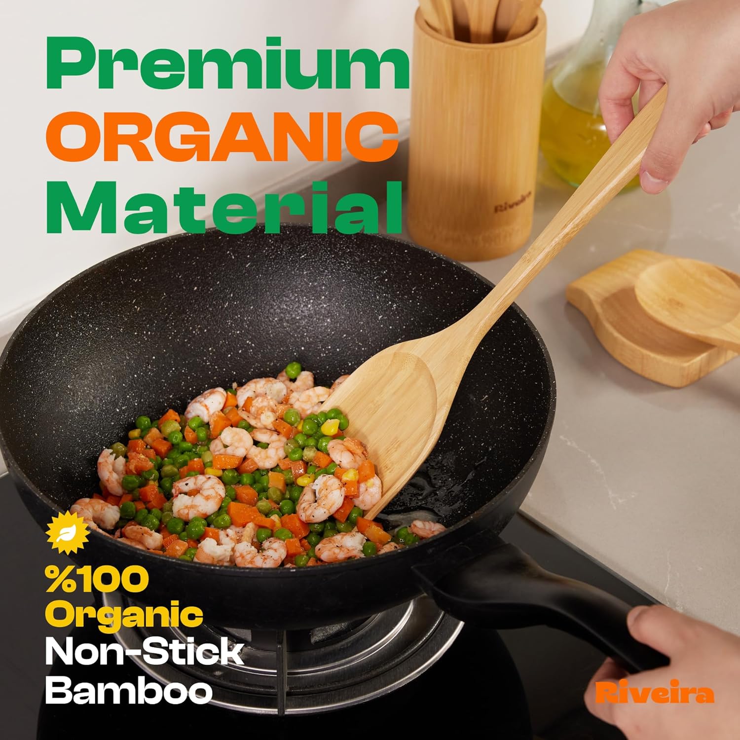 • Durable and Safe for All Cookware – Our brown bamboo wood utensils are made to last. These wooden kitchen utensils are heat-resistant and designed to withstand daily use. They are also non toxic kitchen utensils, ensuring safe cooking. The wood spatula for cooking is perfect for handling delicate foods, and the wooden spatula set provides a variety of options for different types of dishes. With this set, you get both durability and a natural, safe cooking experience.