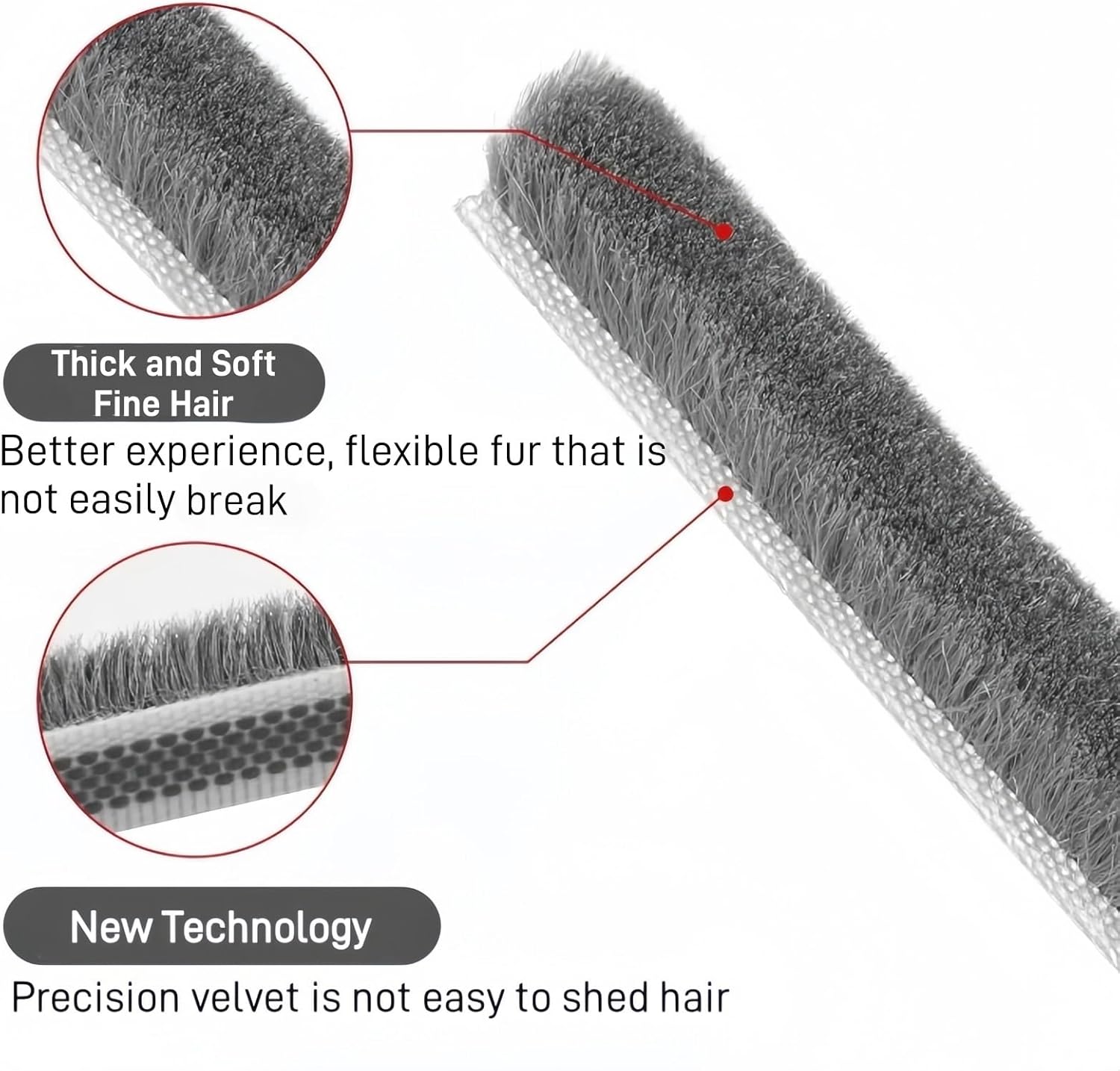 • 【High Density Brush Seal Strip】Self sdhesive door weather stripping door seal strip made of durable woven material. High density Fine hair, not easily fall off and lose hair, soft bending without deformation. And this window seal strip can be trimmed to any size according to your needs.