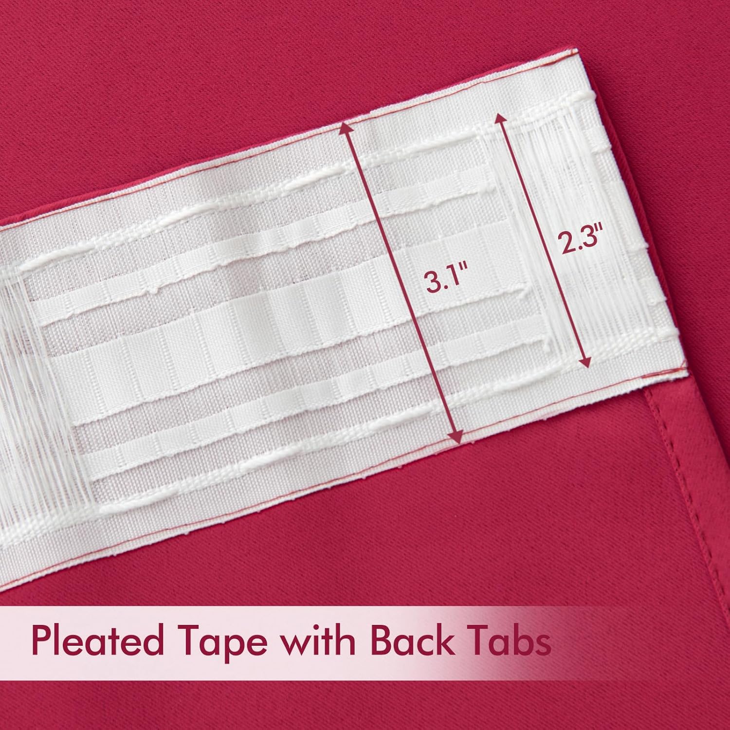 MIULEE Hot Pink Back Tab Blackout Curtain 96 Inch Long 2 Panels Set for Bedroom, Rod Pocket/Pinch Pleat Thermal Insulated Living Room Darkening Pleated Light Blocking Floor to Ceiling Drape