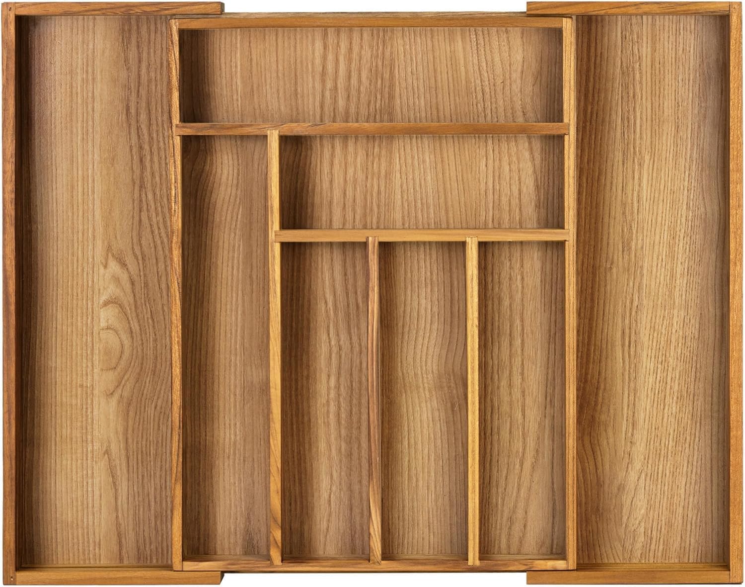 • Holds more Utensils: This teak silverware drawer organizer has 6-8 compartments, more compartments for sorting and organizing utensils, knives, spatulas, spoons and forks invisible in drawer