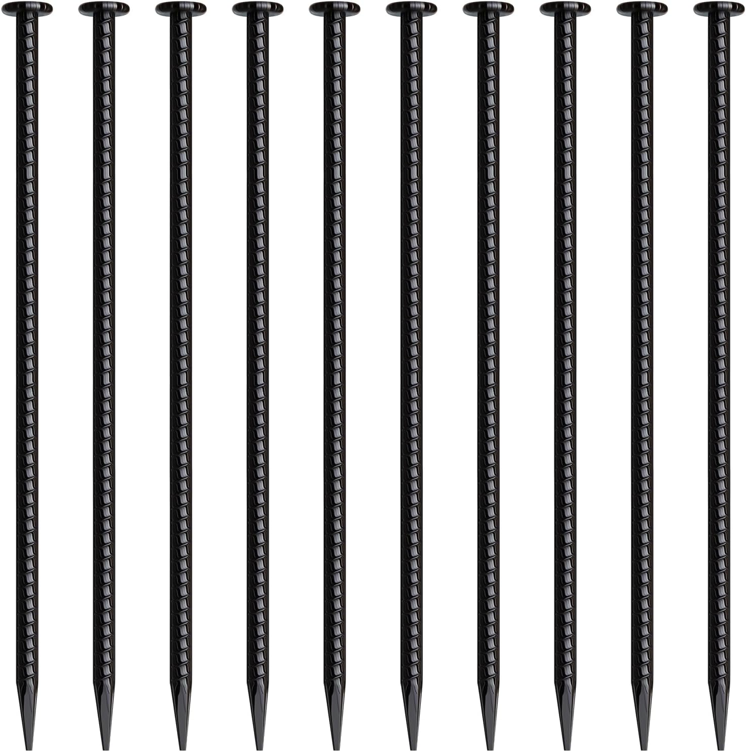 • 【16 INCH REBAR STAKES】Each heavy duty rebar stake measures 16 inches in length, with a diameter of 1/2 inch (12mm) and a flat top measuring 1 inch in diameter. The package includes 10 pieces of rebar stakes, making them ideal for mounting hardware intended for permanent installation in asphalt.
