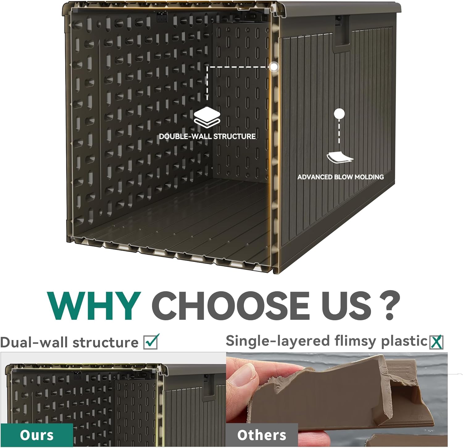 • Double-Layer Structure- Our all-weather resin deck box stands out with a double-layer structure and enhanced with internal reinforced steel beams, providing durability and resilience for outdoor use