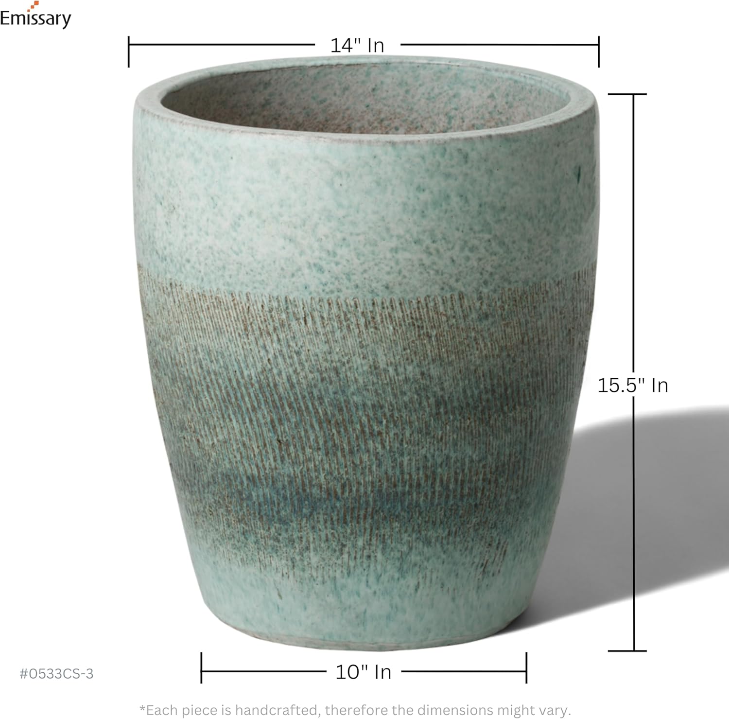 Emissary Bullet 14 in. Coastal Splash Ceramic Round Planter (14 in. L x 14 in. W x 15.5 in. H) with Drainage Hole