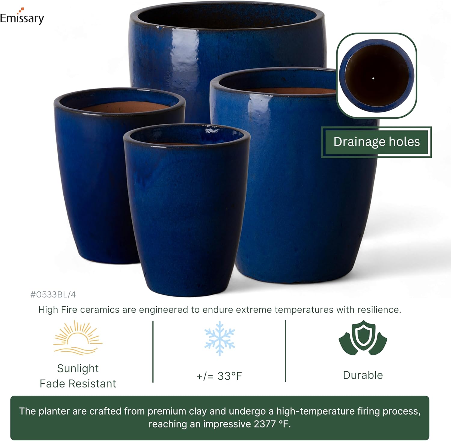 Emissary Bullet 14 in. Blue Ceramic Round Planter (14 in. L x 14 in. W x 15.5 in. H) with Drainage Hole