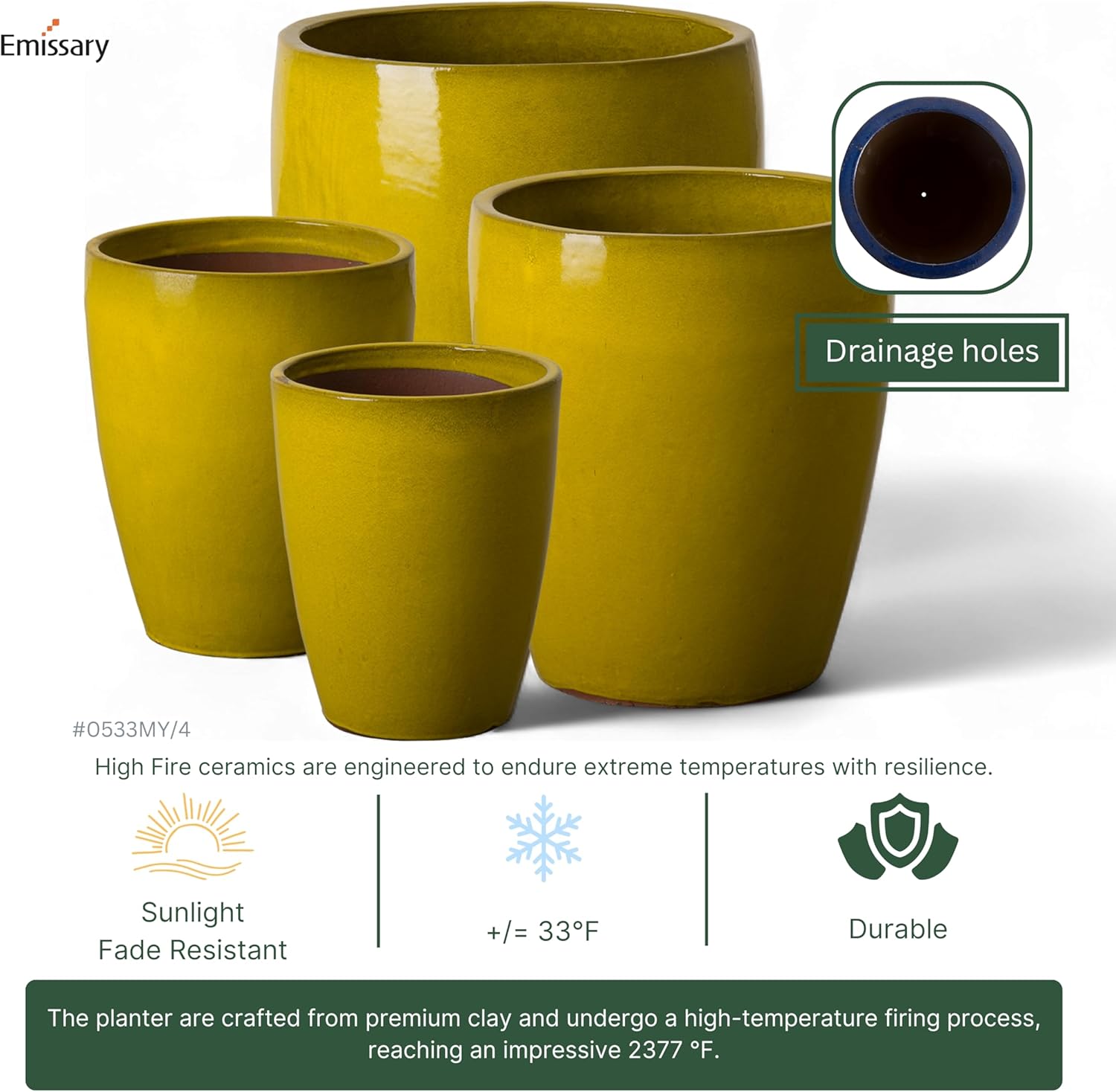Emissary Home and Garden Bullet 11.5 in. Mustard Yellow Ceramic Round Planter (11.5 in. L x 11.5 in. W x 14 in. H) with Drainage Hole