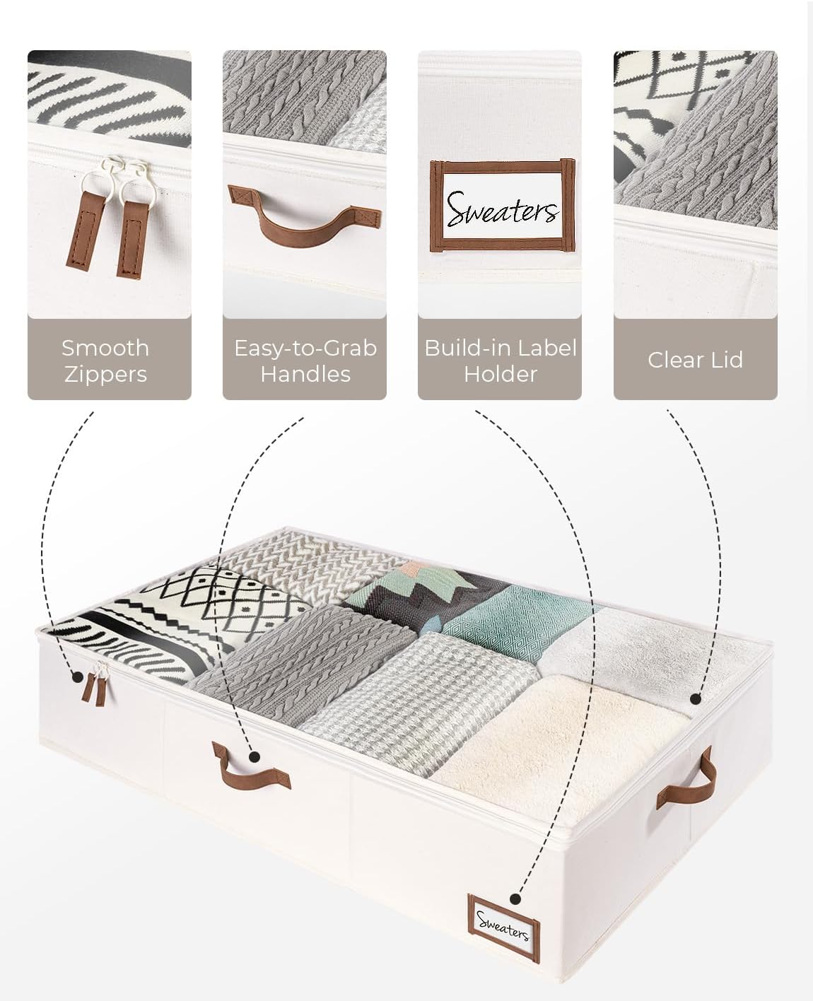 StorageWorks 117L Under Bed Storage Containers with Handles and Label Holder, 2 Pack Ultra-thick Fabric Underbed Bins, Closet Organizer for Clothes, Blankets, Sweater