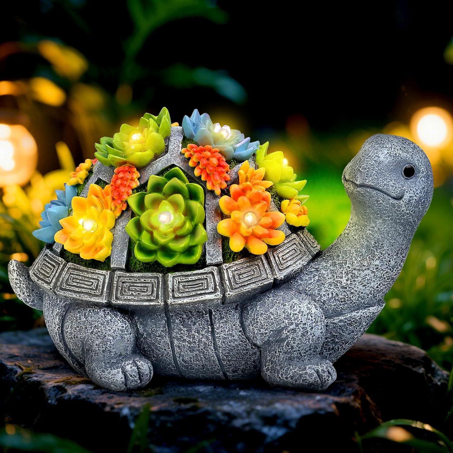 Solar Turtle Statue Garden Decor for Outside with Succulents and 7 LED Lights – 10.3 Inch Cute Lawn Ornaments for Patio, Porch, Balcony & Yard – Unique Birthday Gifts for Women Mom Grandma Wife
